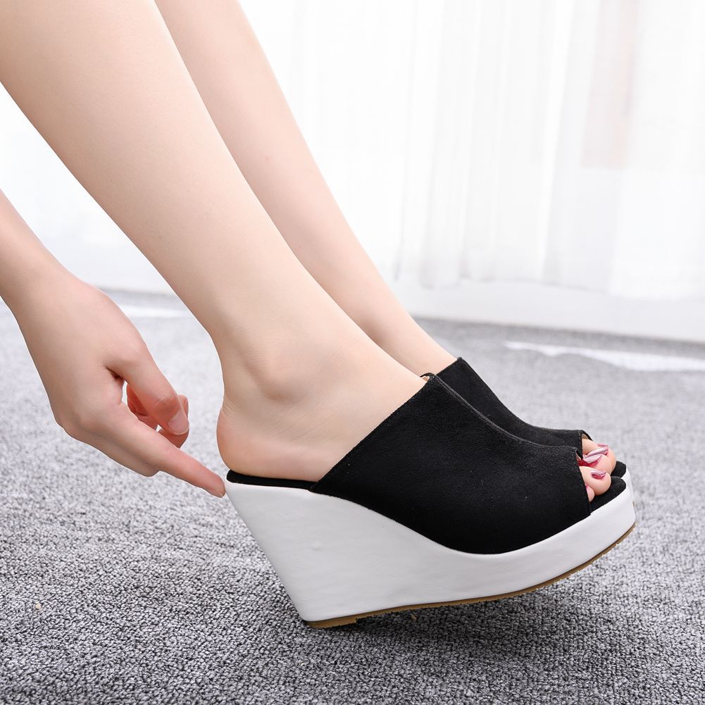 Popular elements: shallow mouth, slope heel, buckle, waterproof platform
