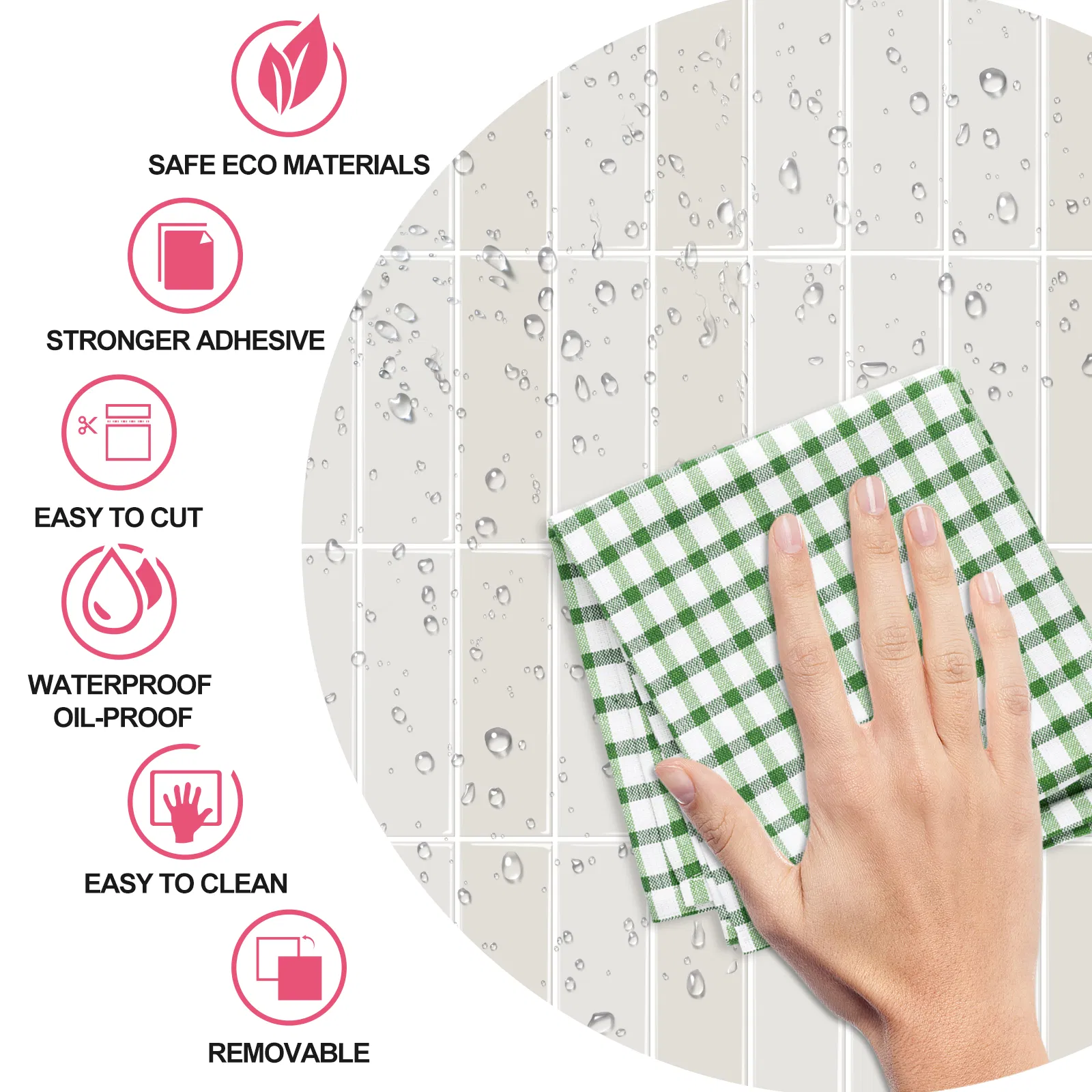 Eco-friendly materials, wall renovation, easy to clean, waterproof and oil-proof