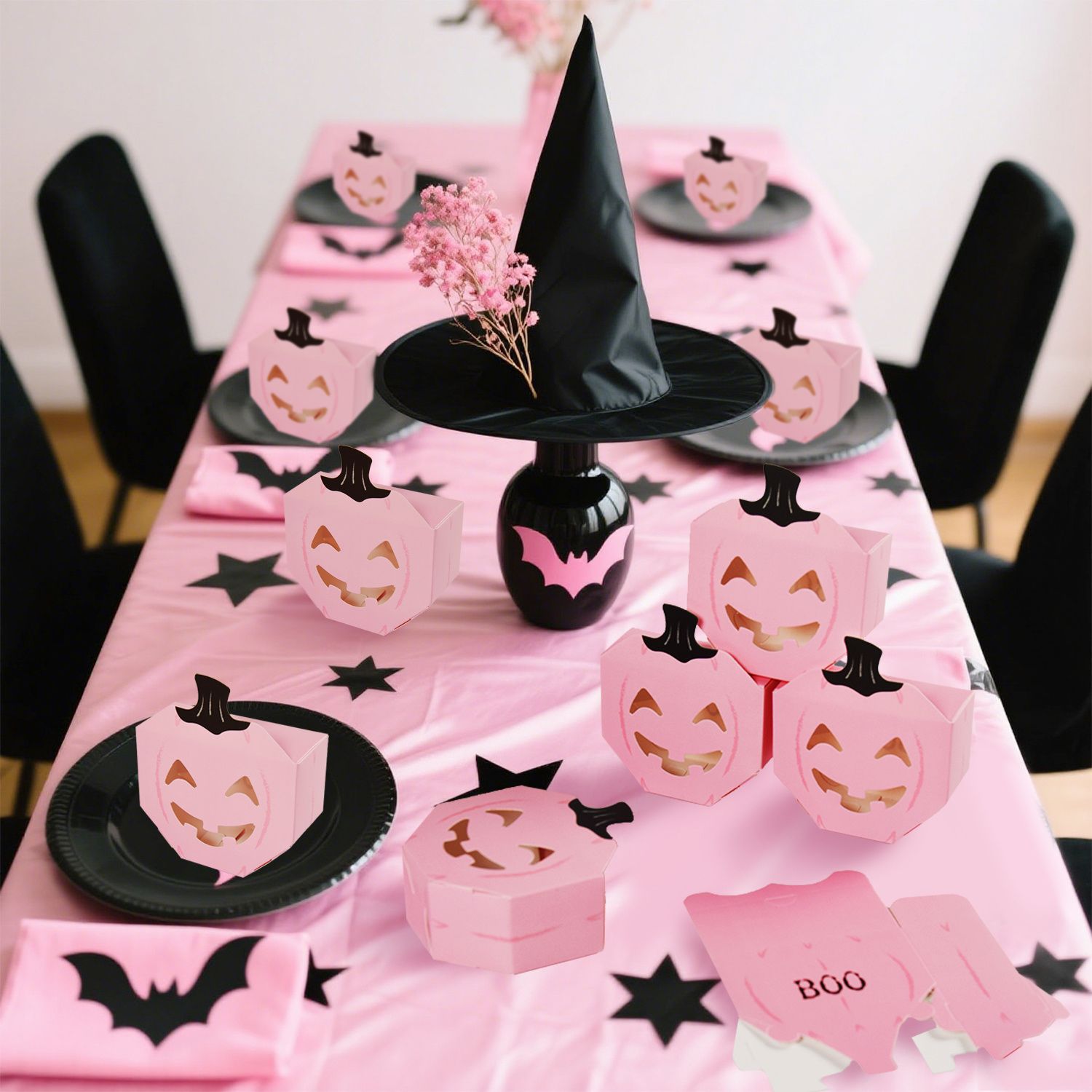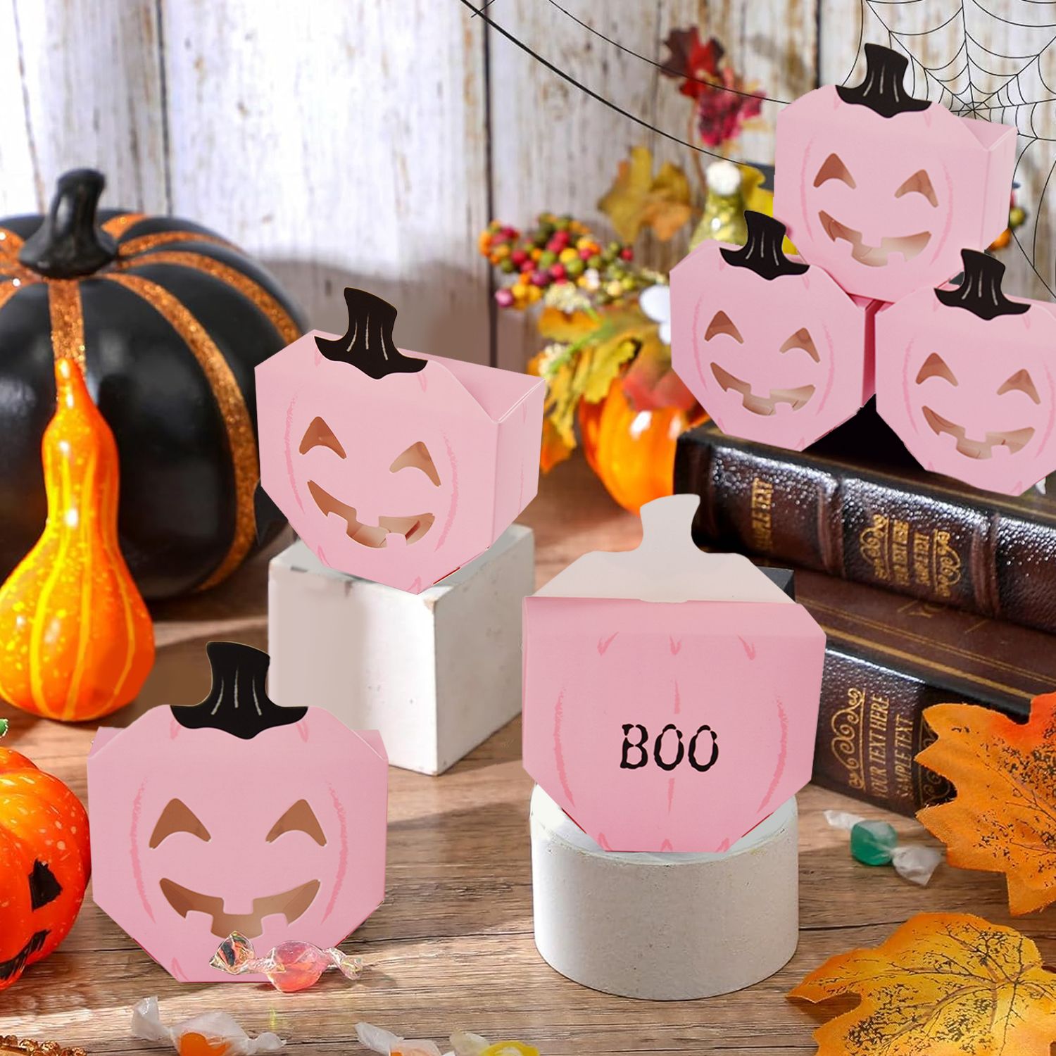 10Pcs Halloween Pink Pumpkin Gift Boxes Unique Candy Boxes With Hollow Scary Smiley Face Window Trick Or Treat Candy Goodie Bags For Halloween Birthday Party Haunted House Table Decoration