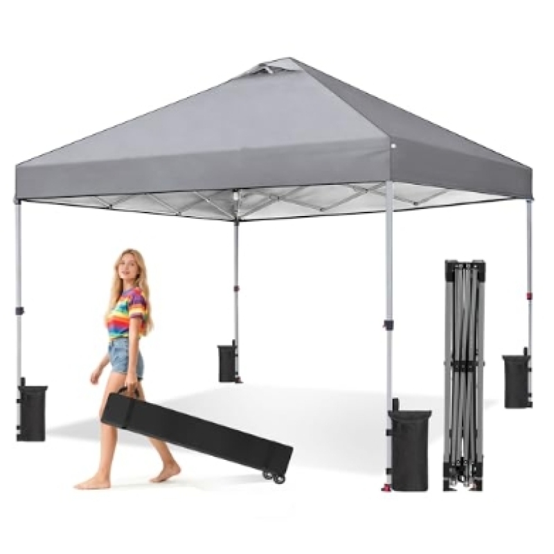 100 square feet of shade, adjustable height: 10x10 feet straight leg design, providing a 100 square feet spacious shaded area; 3 levels of height adjustment, flexible adjustment according to needs, more flexible and convenient for sun protection and shade.