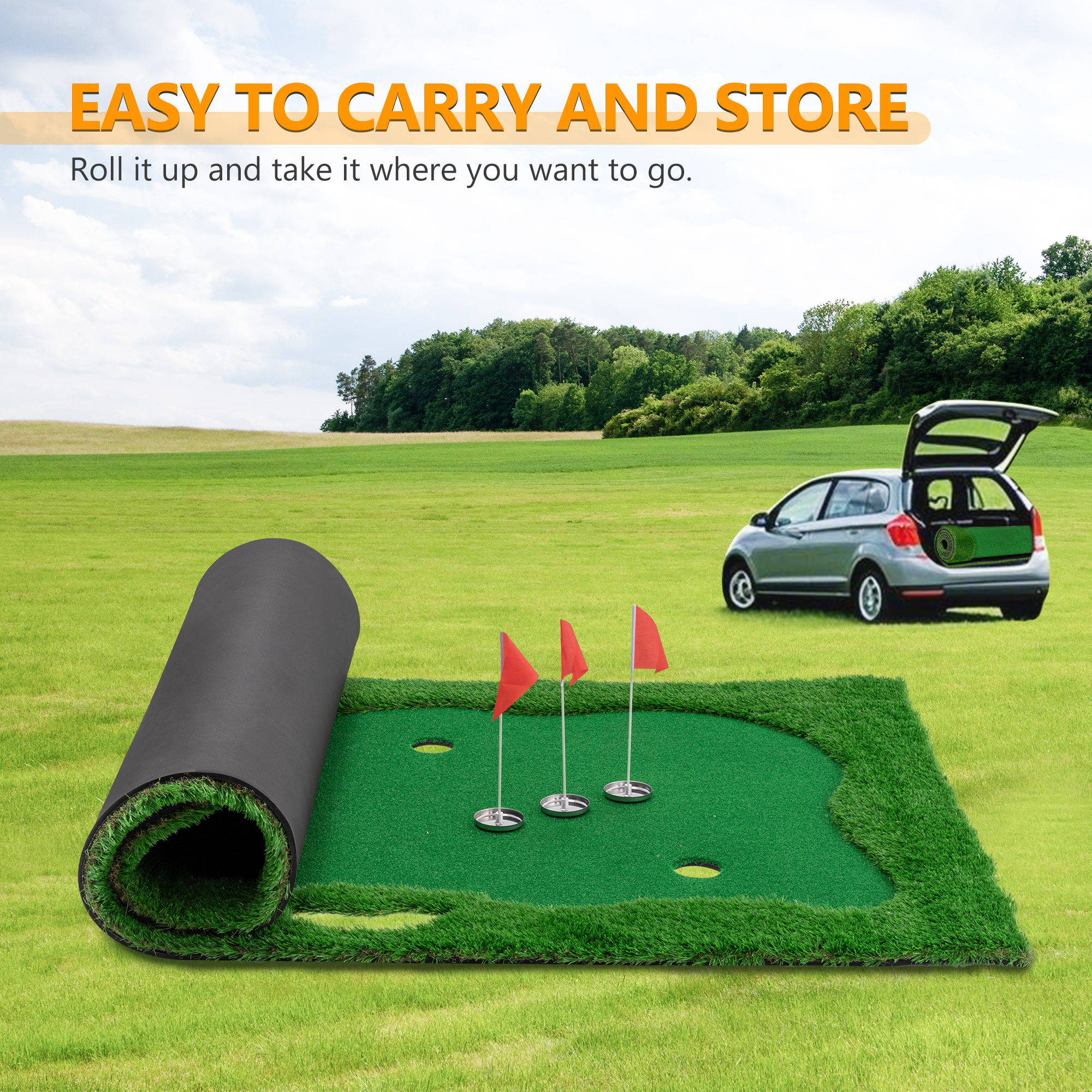 Product Name:10x5 FT Golf Putting Green, Golf Training Mat with High-quality Turf, 3 Holes, 3 Flags and Cups for Indoor Outdoor