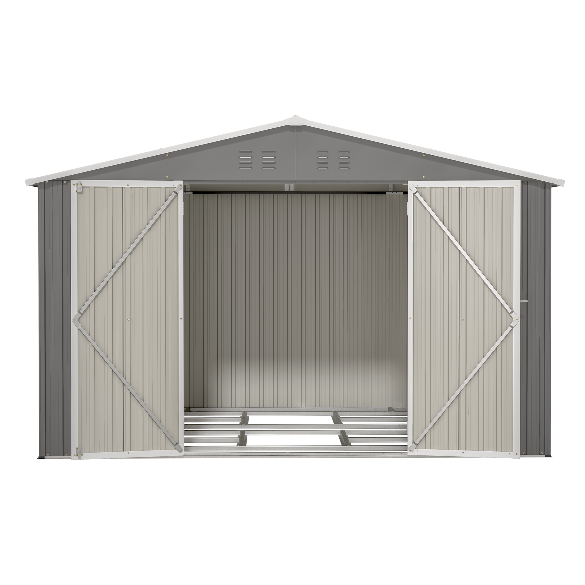 Product Name:10X8 FT Outdoor Tool Storage Shed with Metal Foundation & Lockable Doors, All Weather Metal Sheds for Garden, Patio, Backyard, Lawn, Gray
