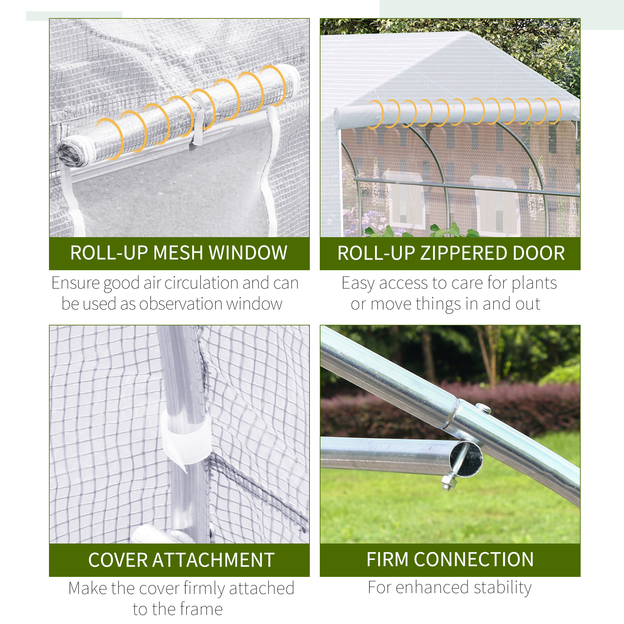 11.5X10X6.5 High Tunnel Greenhouse, With 6 Roll-up Windows, Zippered Door, PE Cover,Steel Frame, Walk-in Greenhouse, White