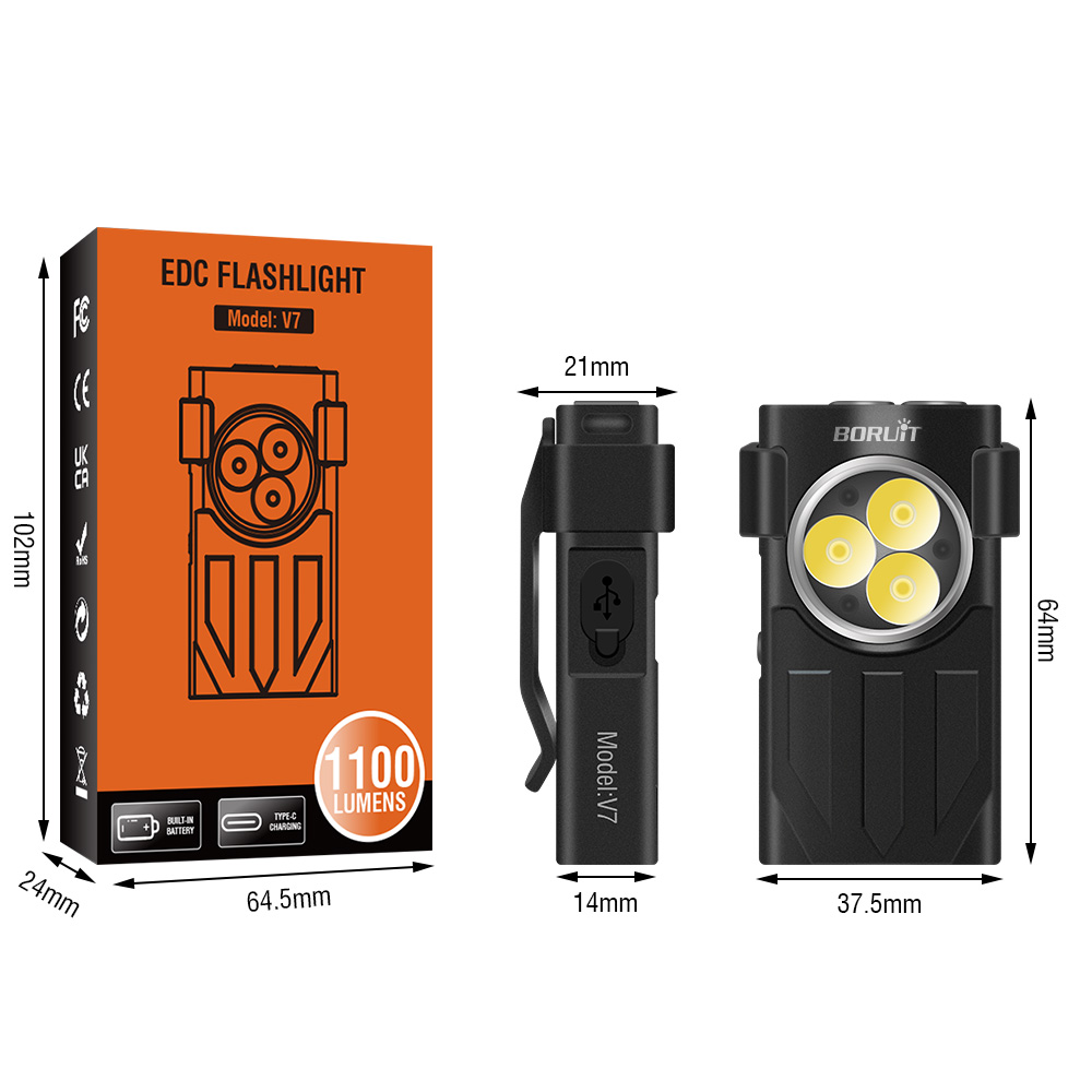 Lightweight Portable Flashlight Mini Flashlight weighs only 1.83 ounces (52 grams) and measures 2.52 inches x 1.47 inches x 0.82 inches (64 * 37.5 * 21 mm). It is small, easy to hold, convenient to use in a pocket or key chain, and convenient to wear and use every day.