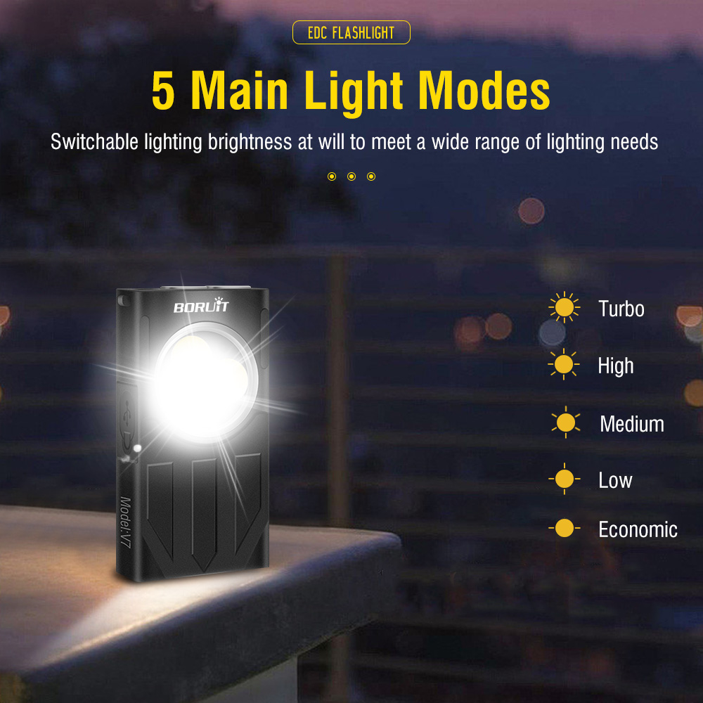 10 mode lights and 4 color lights - The small key chain flash has 5 main light modes (super bright - high light - medium bright - low light - economy), 5 side light modes (white light - UV red flash - red blue flash, press three times to turn on the red blue flash), Can meet your various requirements. Our mini flash is bright and can meet the needs of daily use even in low light mode.