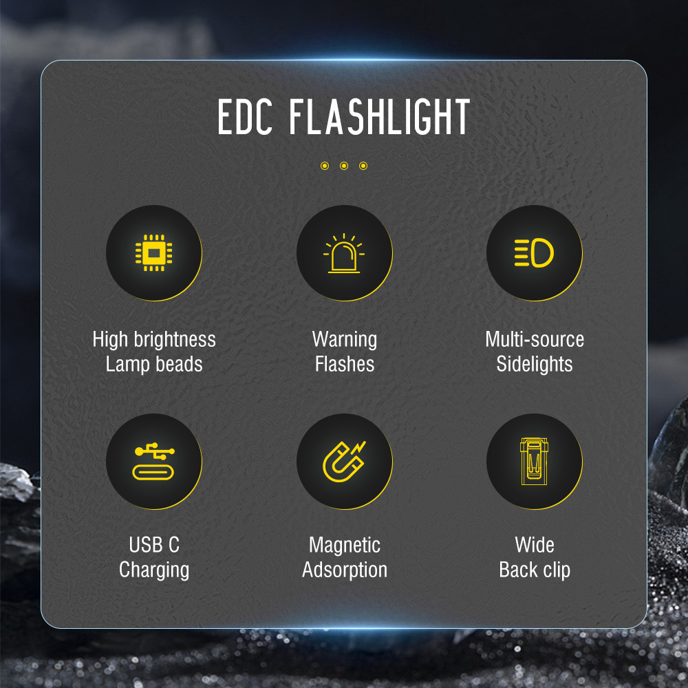 Rechargeable flashlight - built-in 800mAh battery, USB-C fast charging port, practical and convenient.". Adding a magnet to the tail of the flashlight can be absorbed anywhere containing iron, making it more convenient and suitable for more scenes.