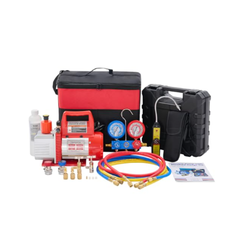 • ALL-IN-ONE HVAC SERVICE KIT WITH CARRY BAG: Your complete professional solution includes the vacuum pump, manifold gauge set, leak detector, three hoses, assorted adapters, a can tap, and a durable carry bag. Perfect for both DIY enthusiasts and HVAC professionals servicing automotive, residential, and commercial refrigeration systems.