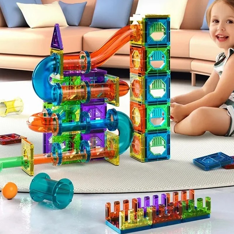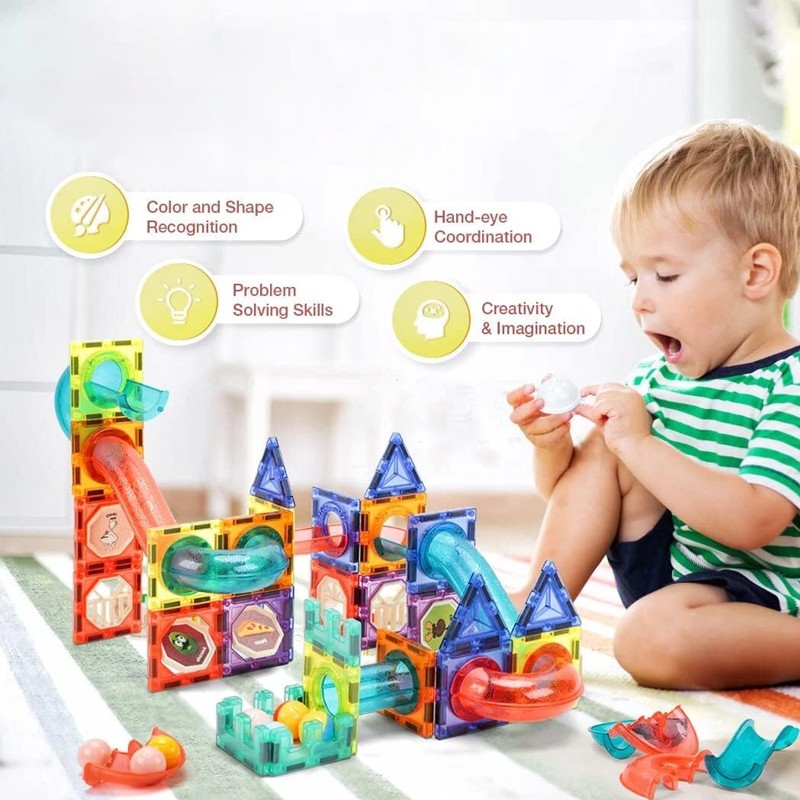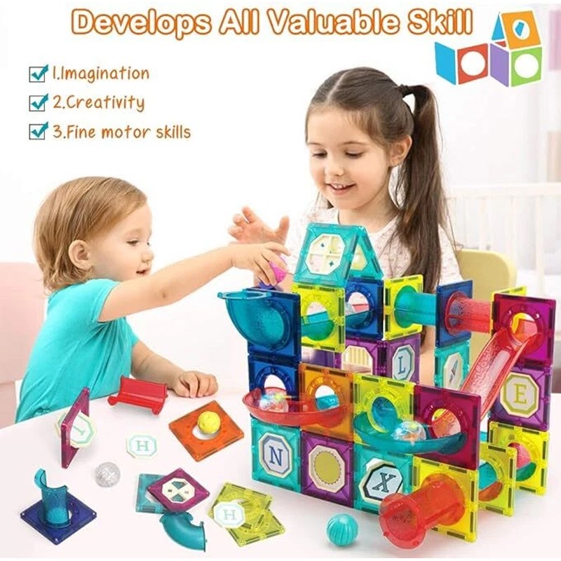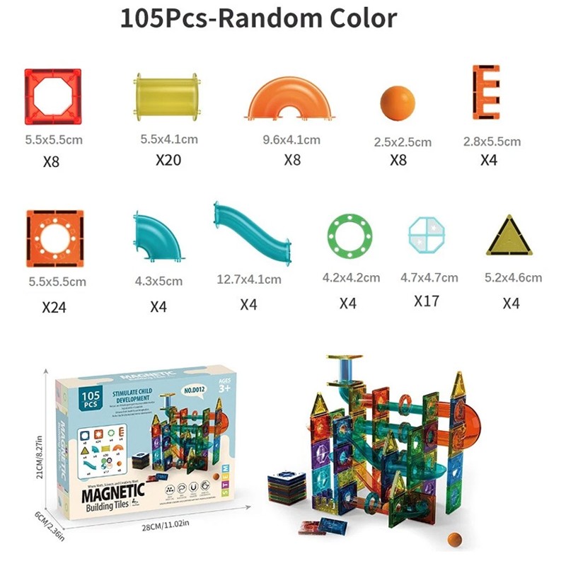 Enhance your child's creativity and problem-solving skills with this engaging Magnetic Tiles Building Blocks set. With 105 pieces, including a Marble Run feature, this set is perfect for beginners looking to start their construction journey. Made of durable plastic and available in assorted colours, this set is perfect for children who love to build, create and play.
