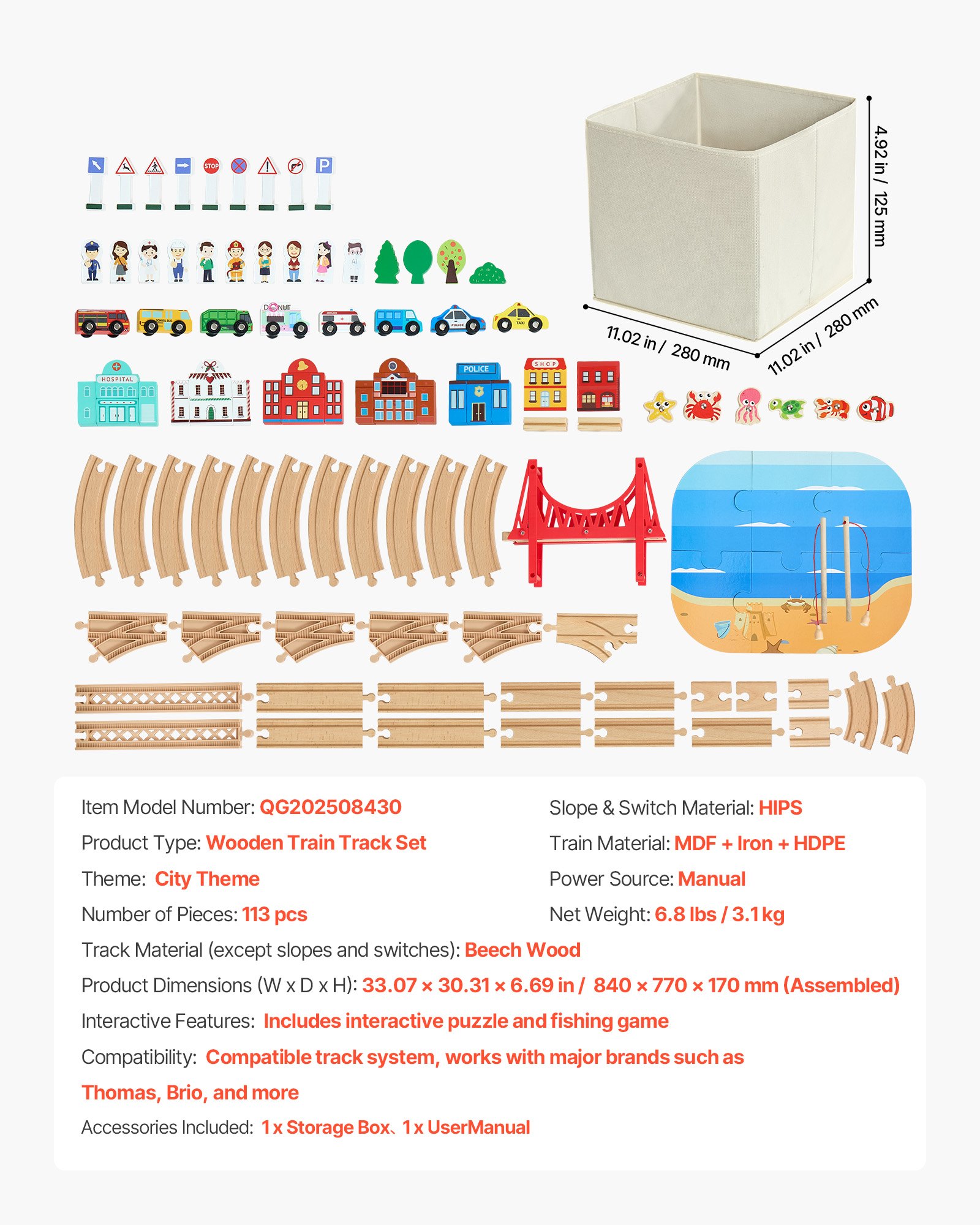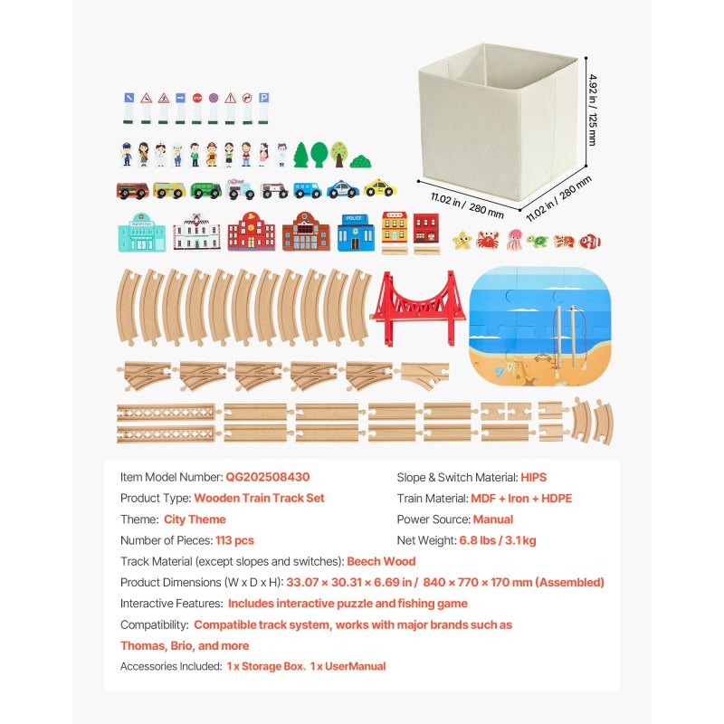 Convenient Storage: Comes with a storage box to keep track pieces organized. Helps children develop sorting and organizing habits while keeping the wooden train track toy orderly, combining practicality with learning