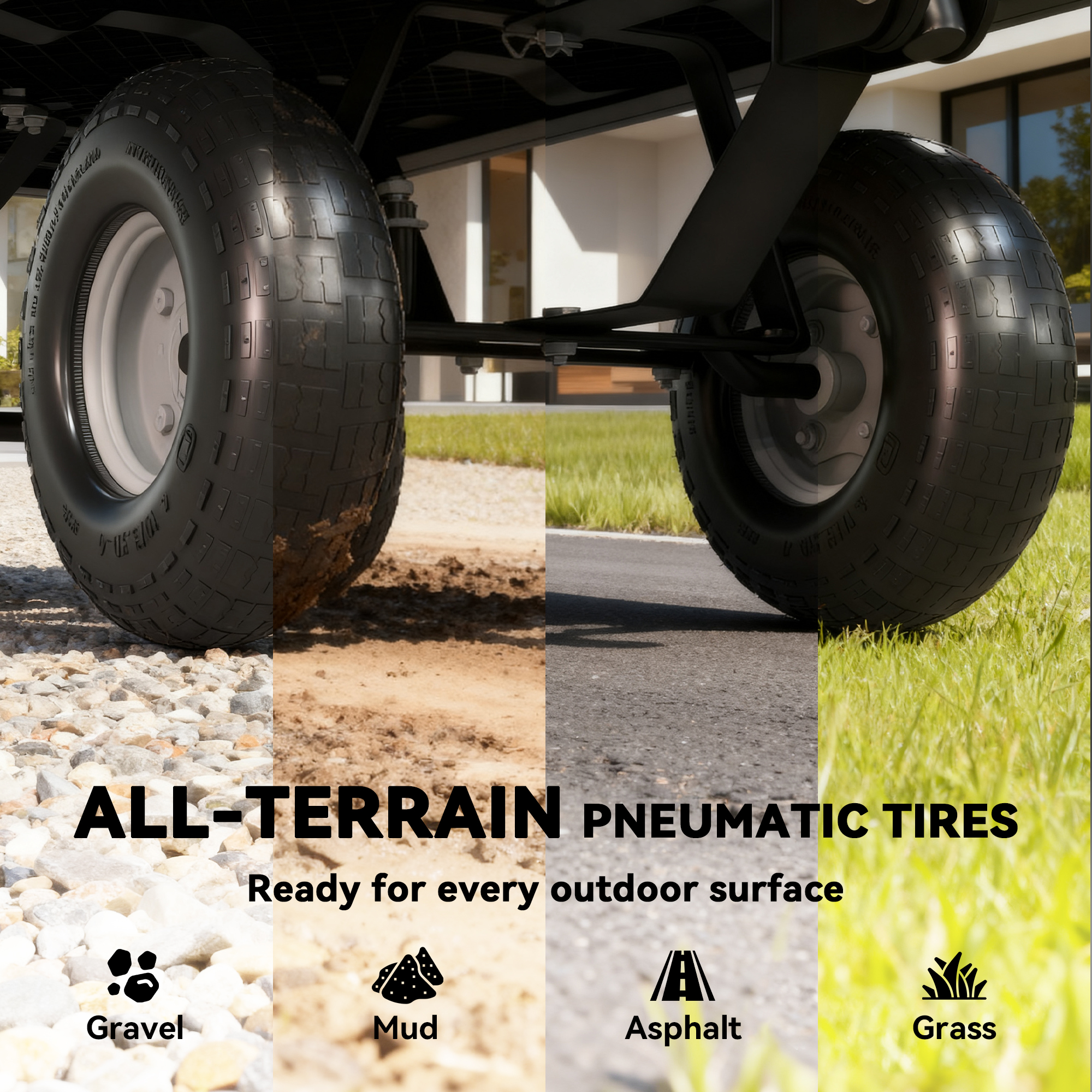 Whatever the gardening, camping or festival load, this heavy duty trolley will see you through. The 114L capacity offers plenty of room, with the removable waterproof bag providing protection against outer weather. Made from steel, this is a strong piece, with removable sides to allow easy loading and unloading. Complete with pneumatic rubber tyres for smooth movement.