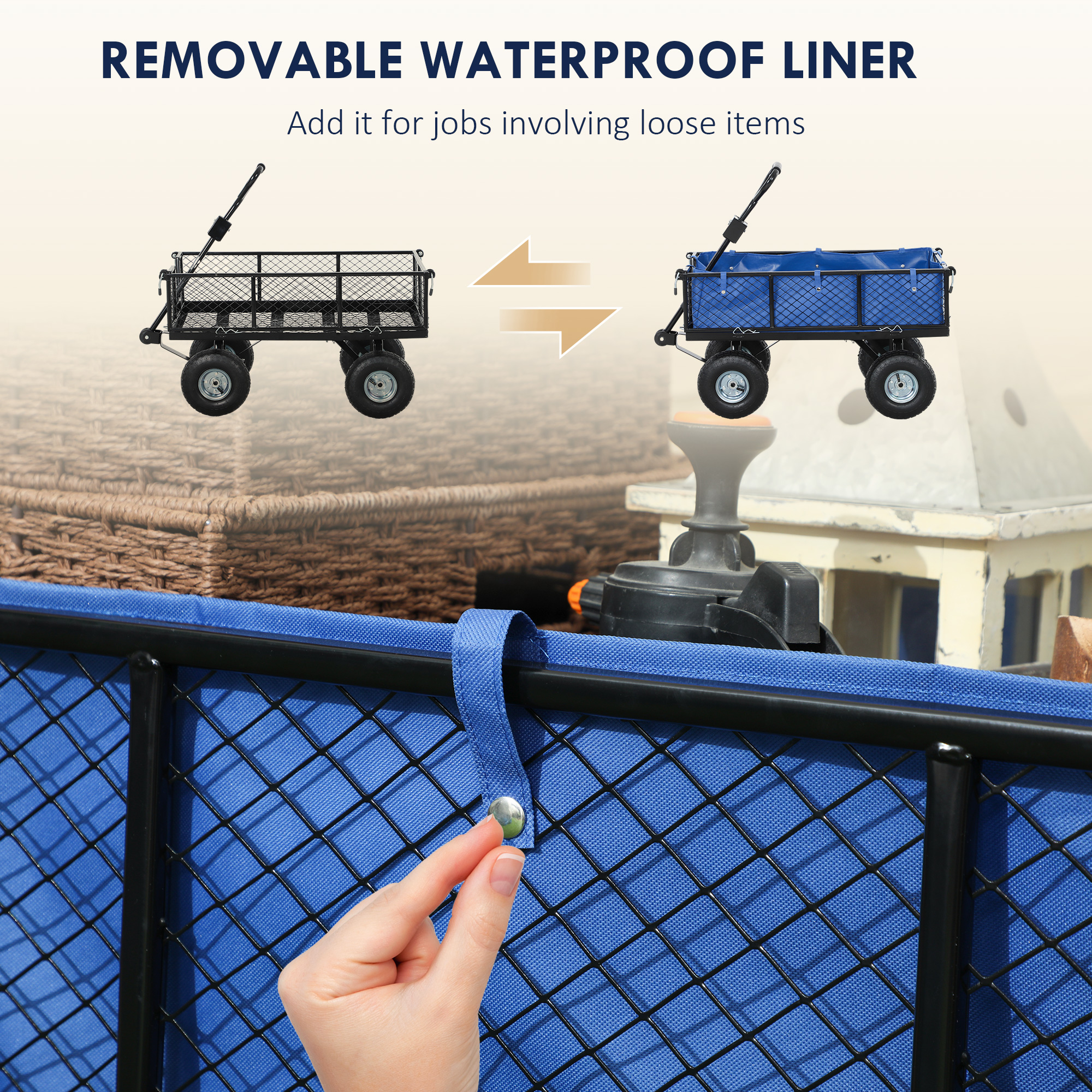 Whatever the gardening, camping or festival load, this heavy duty trolley will see you through. The 114L capacity offers plenty of room, with the removable waterproof bag providing protection against outer weather. Made from steel, this is a strong piece, with removable sides to allow easy loading and unloading. Complete with pneumatic rubber tyres for smooth movement.