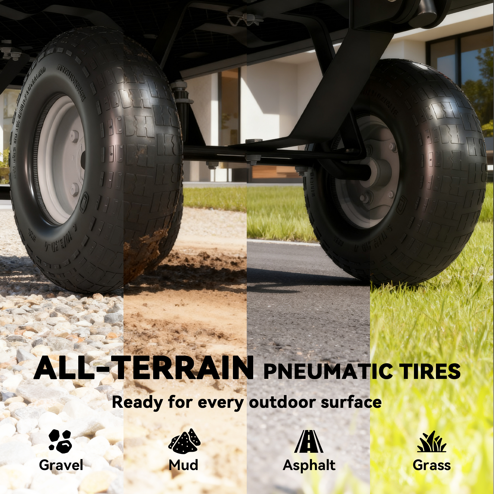 Whatever the gardening, camping or festival load, this heavy duty trolley will see you through. The 114L capacity offers plenty of room, with the removable waterproof bag providing protection against outer weather. Made from steel, this is a strong piece, with removable sides to allow easy loading and unloading. Complete with pneumatic rubber tyres for smooth movement.