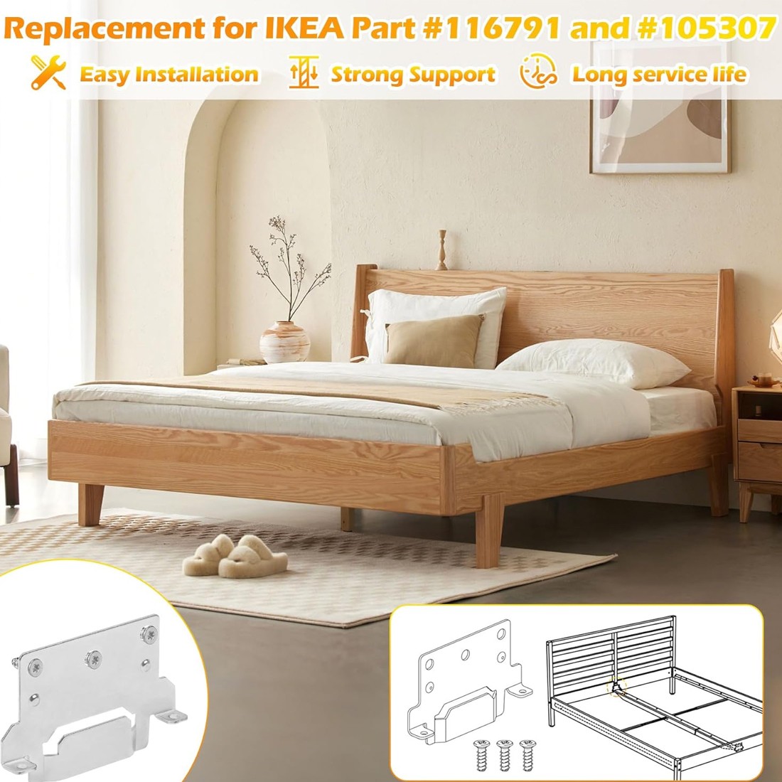 -Extend Your Quality Of Sleep — Each middle support bracket and screw is made of durable iron to resist rust and corrosion. Your reassembled Swedish-designed bed frame with brackets can last longer than ever. Return to many more restful nights of sleep