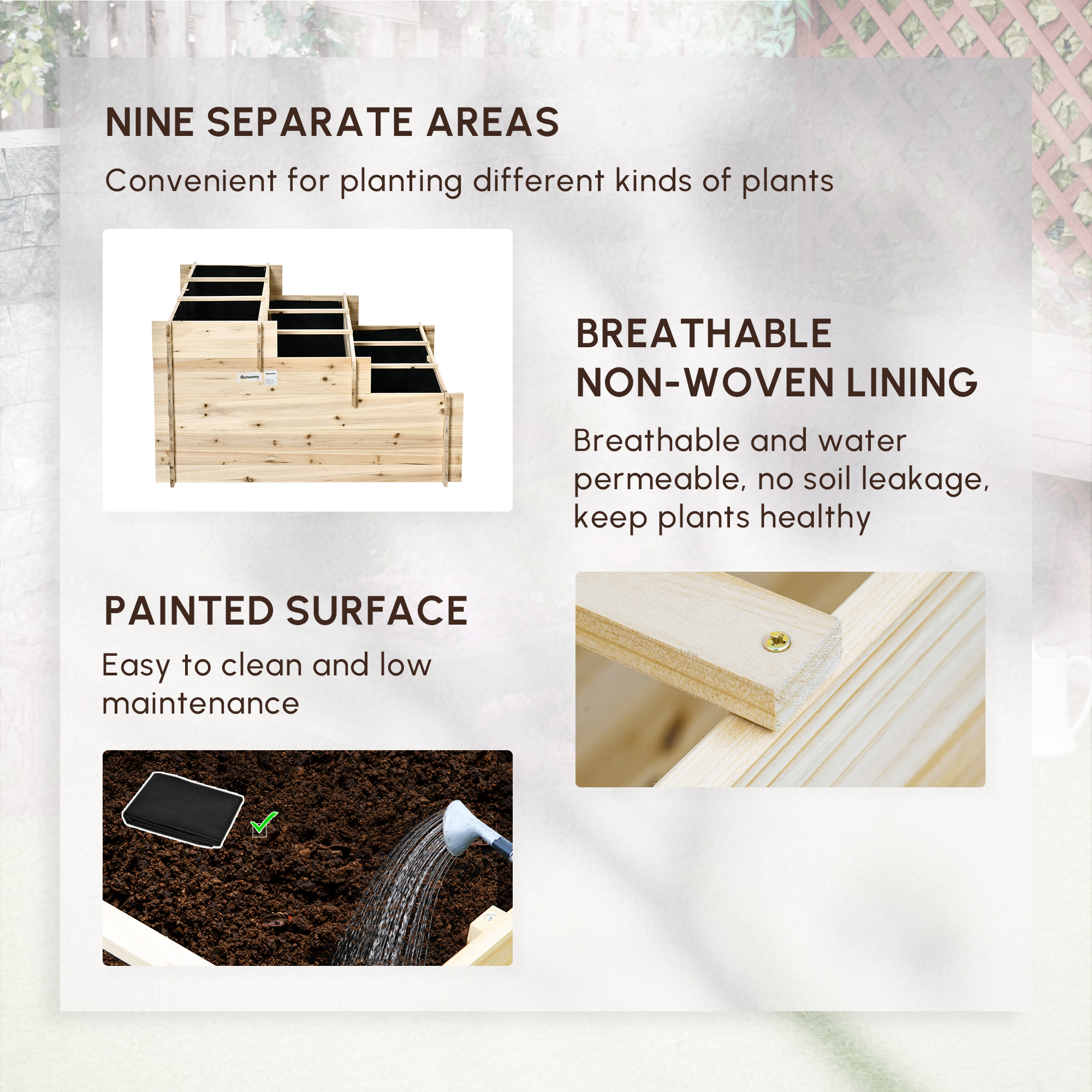 Embrace sustainable living with the raised garden table, crafted for eco-conscious enthusiasts. Made from 100% natural fir, this garden solution aligns with your commitment to the environment. Its innovative design features three tiers and nine compartments, offering ample space for diverse plant growth, accommodating various root lengths and sizes. Ideal for busy lifestyles, it requires minimal maintenance, allowing you to enjoy urban gardening effortlessly.