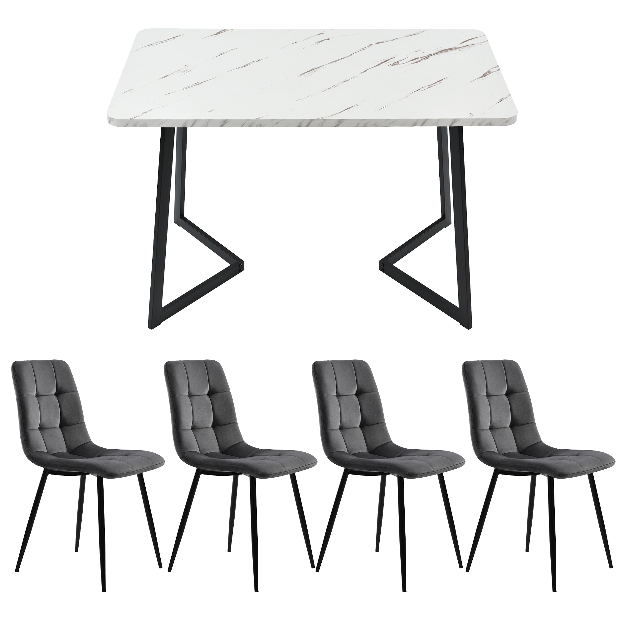 Product Name:117×68cm Dining Table with 4 Chairs Set, Rectangular Dining Table Modern Kitchen Table Set,Dining Room Chair dark grey Velvet Kitchen Chair,Black Table Legs
