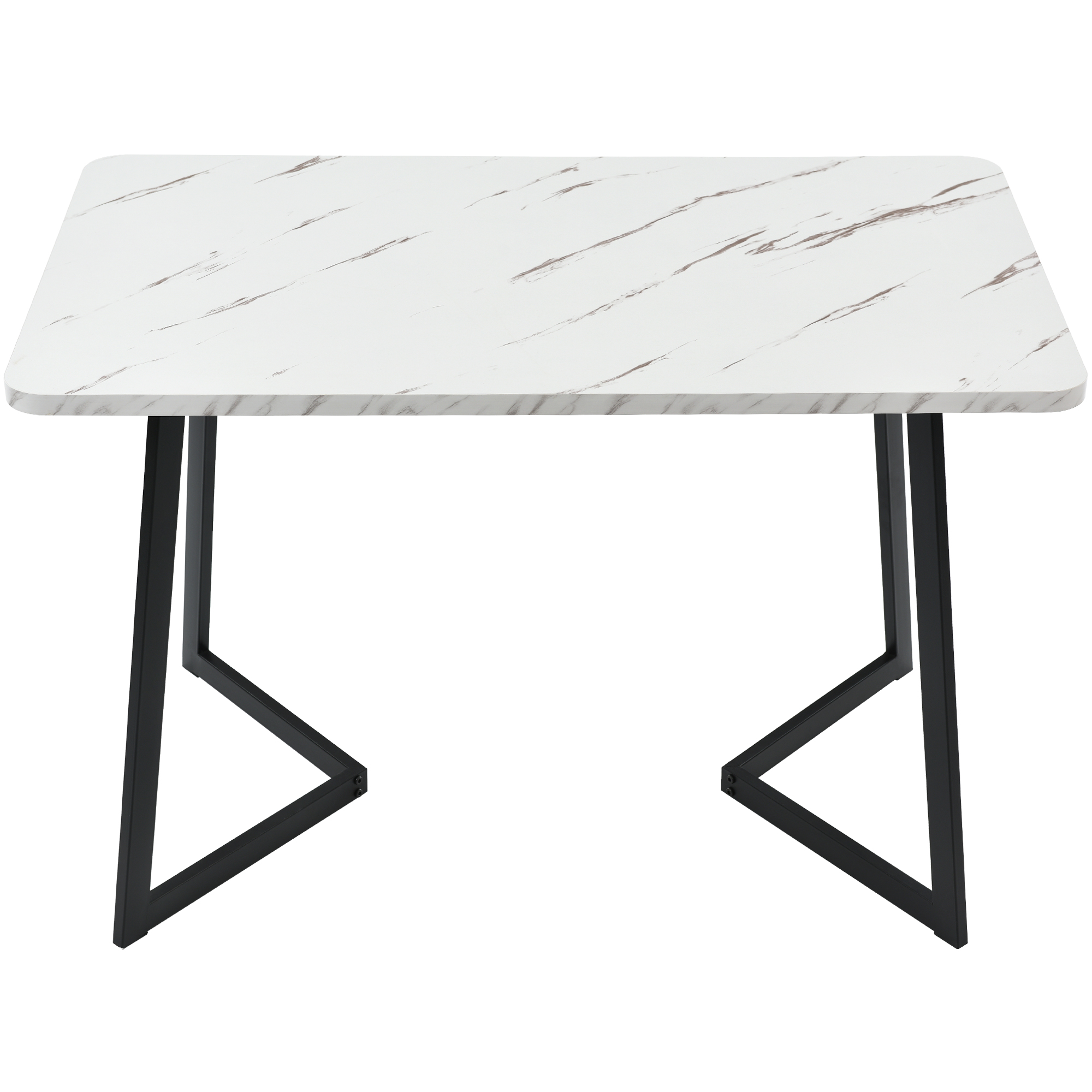 1.Rectangular table top:The design of the new marble sticker on the table is very fashionable and can be perfectly combined with any style. 2.Good quality: The table top is made of MDF . The legs are black powder coated legs. The seat of the chair is covered with velvet. 3.Small dining table sets with modern chairs can be integrated into different style scenes, insert the 4 chairs for a compact design, which makes this set an ideal choice for the limited space. It can be used as a table and chair in the living room, dining room or kitchen table and chair. 4.About Modern Dining Chair:The chair is designed according to ergonomic aspects. The sturdy frame with the four chair legs stands in wonderful contrast to the soft seat shell. The back and seat are particularly distinguished by their decorative quilting. The soft upholstery of the dining chair invites you to linger.