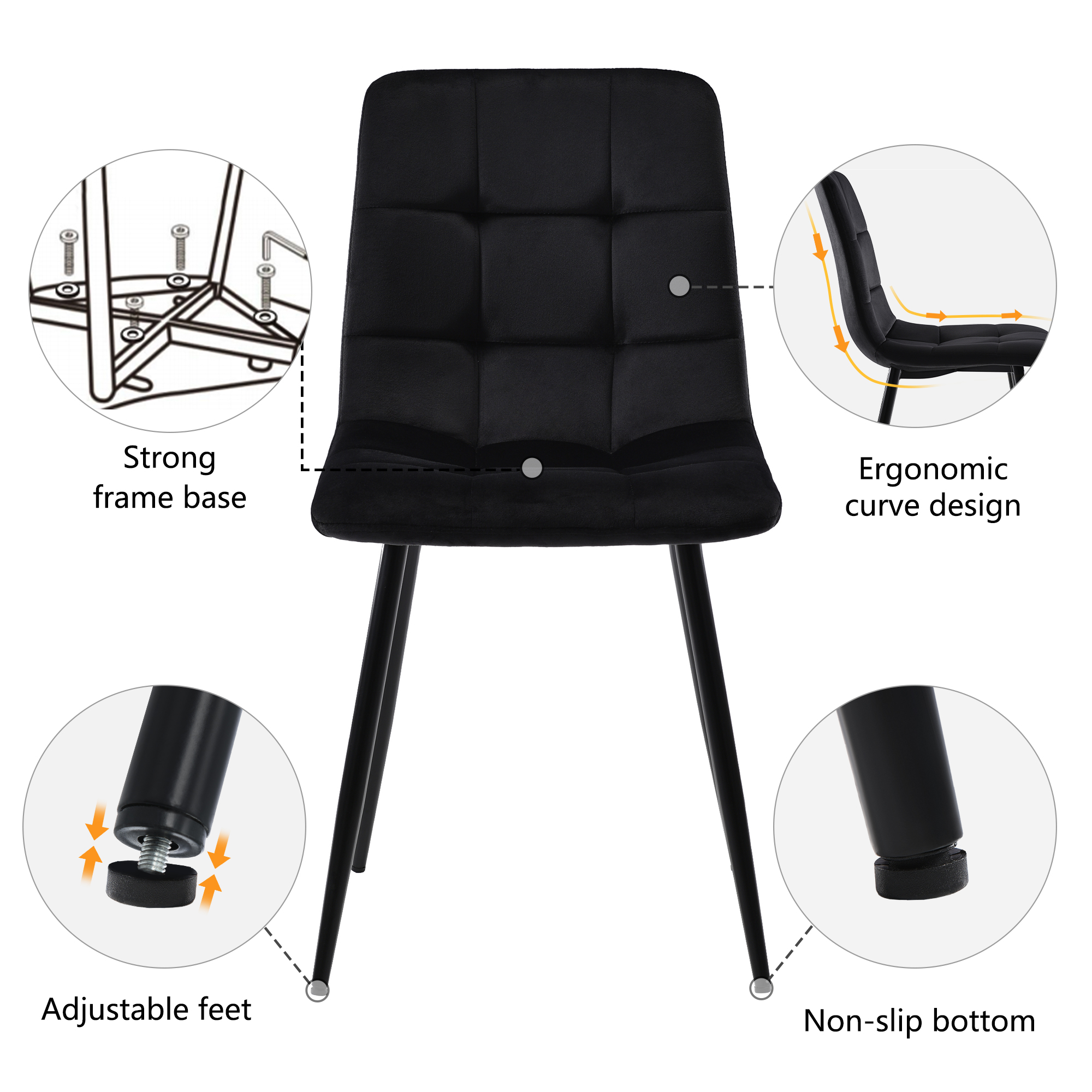 Product Name:117×68cm Dining Table with 4 Chairs Set, Rectangular Dining Table Modern Kitchen Table Set,Dining Room Chair Black Velvet Kitchen Chair,Black Table Legs