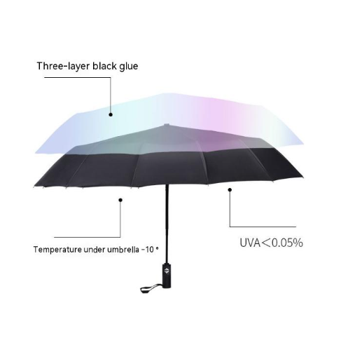 Black rubber coating, thermal insulation and sun protection, blocking ultraviolet rays from direct umbrella surface, strong heat insulation and sun protection performance.
