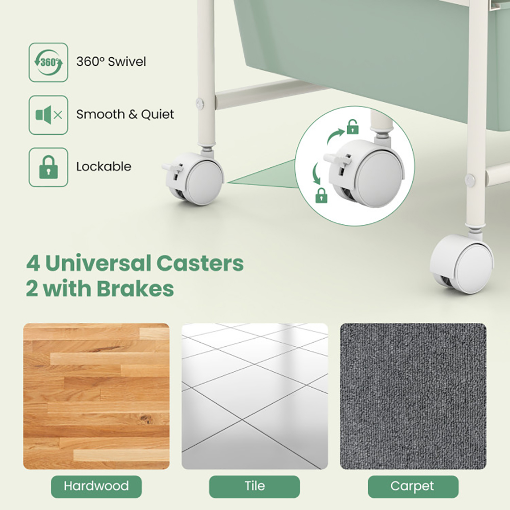 • 4 Universal Casters, 2 with Brakes: With 4 smooth & quiet rolling casters, the utility cart turns into a handy sidekick that brings essentials tools, sewing stuffs, office supplies whenever and wherever you need. It can also be stopped in place when you step down the brakes.