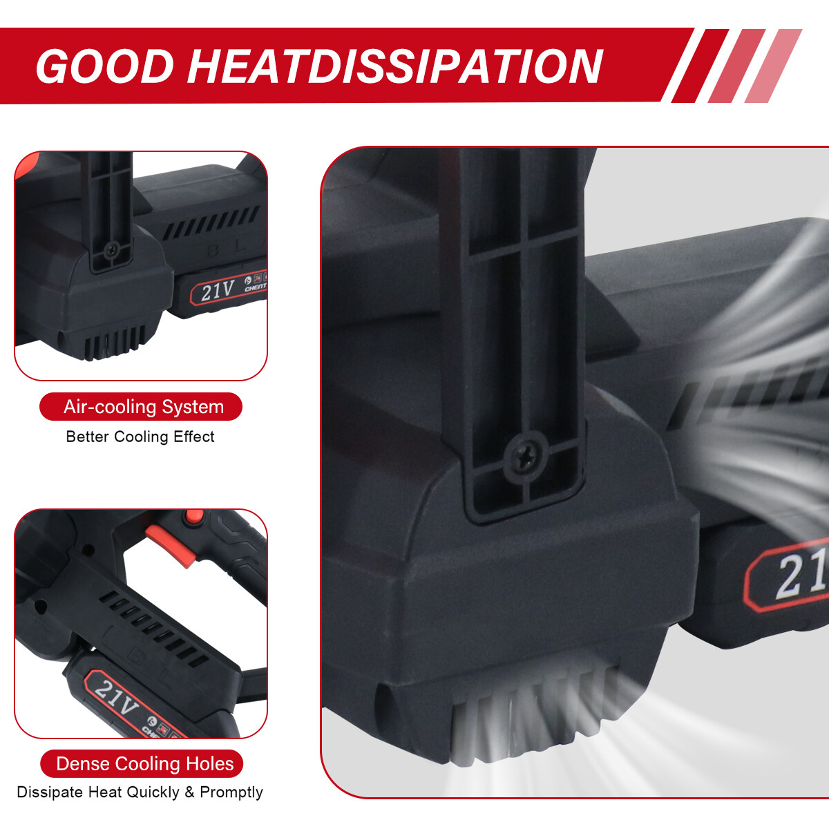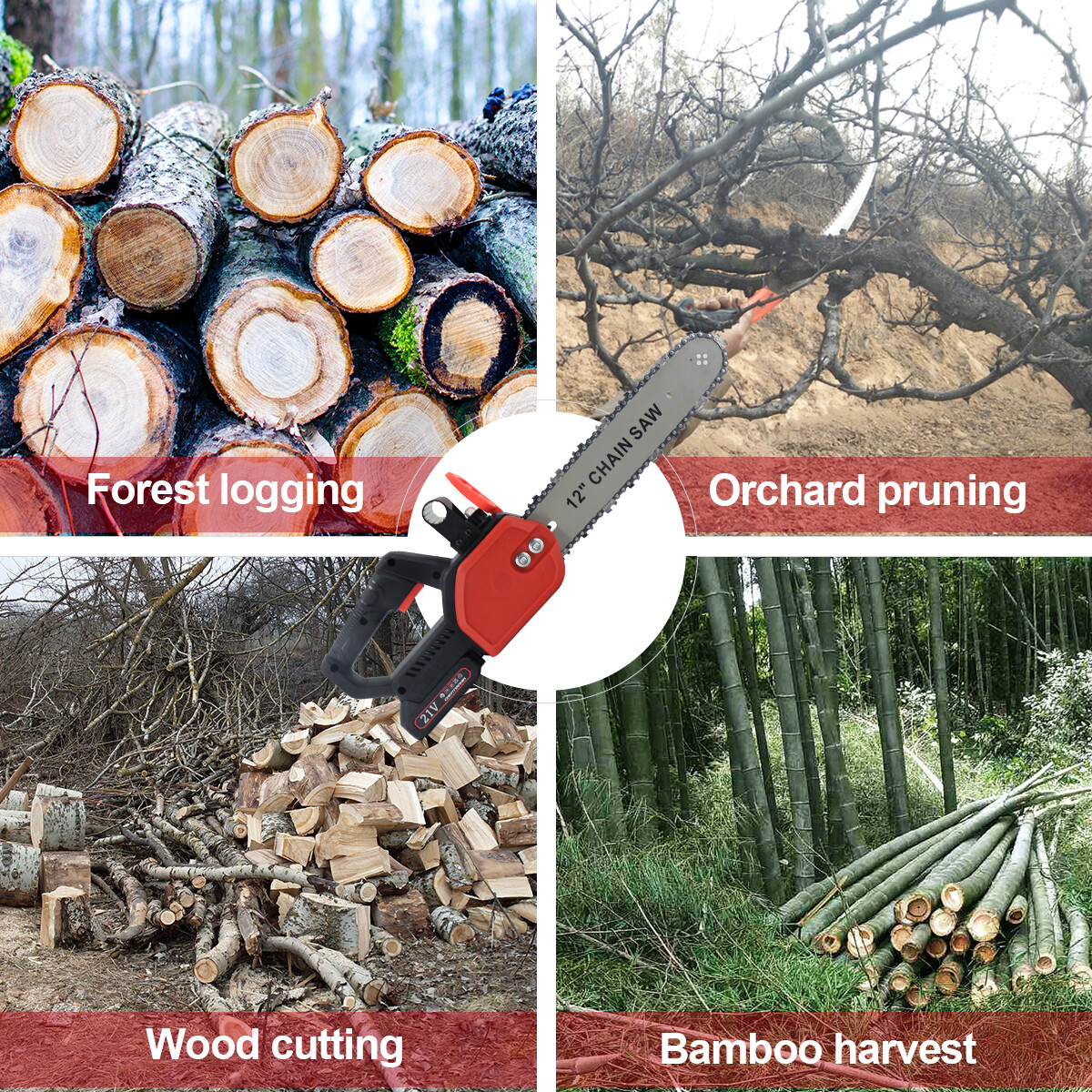 CHENTIANXIA Cordless Li-Ion Battery (2X21V battery) Powered 12" Chainsaw. An excellent choice to help keep your garden in shape. This 12" Chainsaw features the brushless motor which provides 30% more power than the competition. Perfect for trimming tree branches and hedges that at becoming obtrusive.