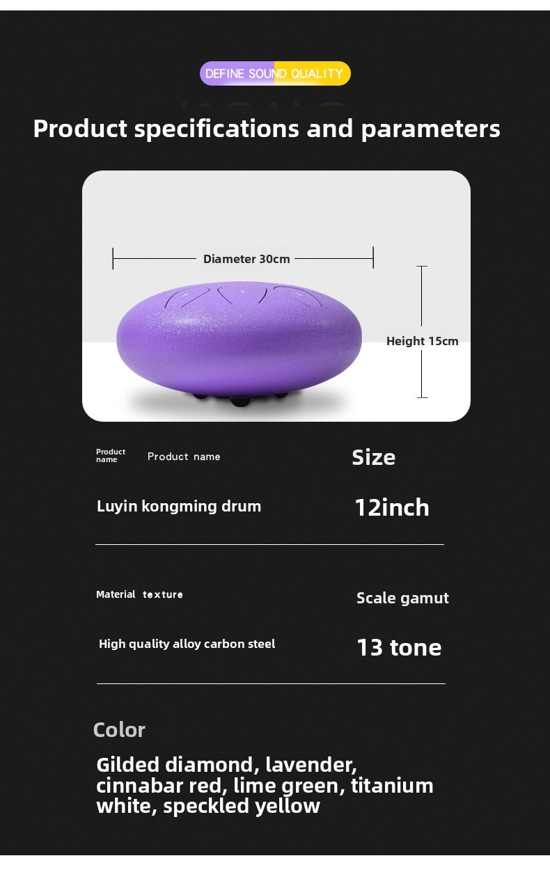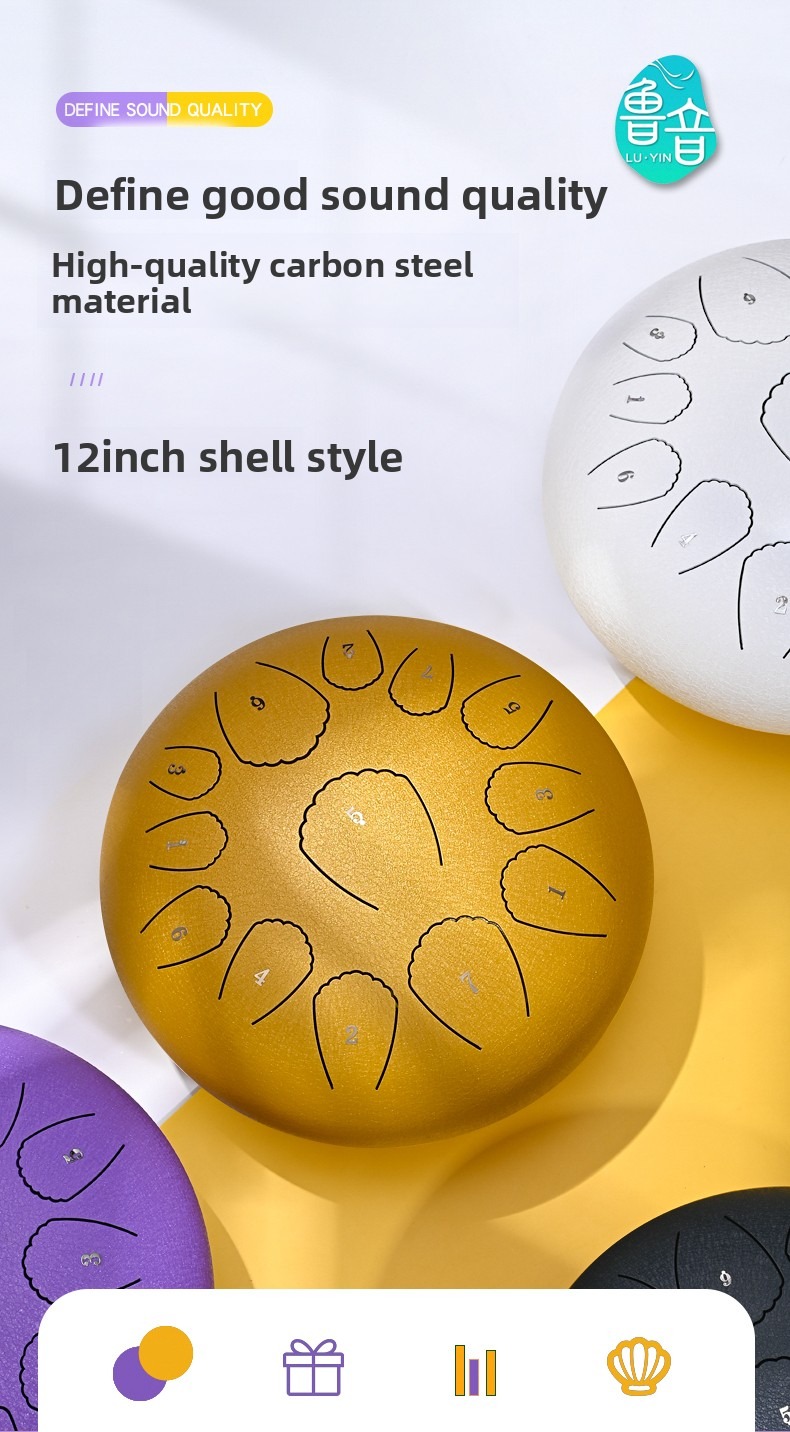 Discover the transformative power of sound with our 12-inch 13-note "Shell Style" Steel Tongue Drum. Expertly crafted for both beginners and seasoned practitioners, this drum is more than a musical instrument—it is a gateway to mindfulness, meditation, and pure artistic expression.