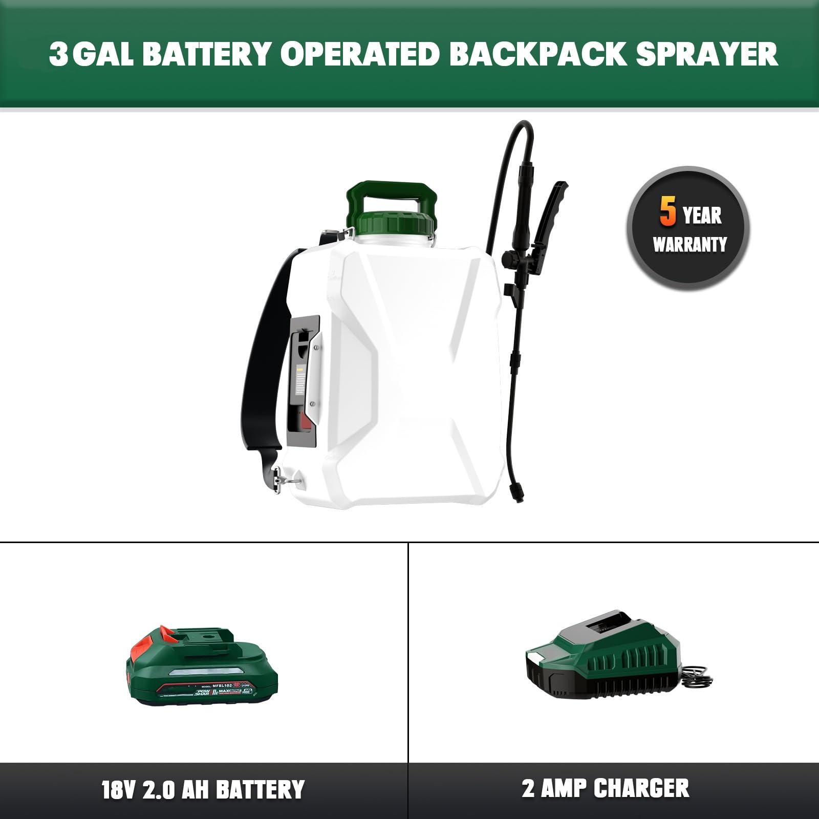 Battery Powered Sprayer: The battery operated lawn sprayer is compatible with Makita 18v batteries. It includes a 18V 2.0Ah battery and a 2A charger, allowing you to spray up to 11 full tanks on a single charge
