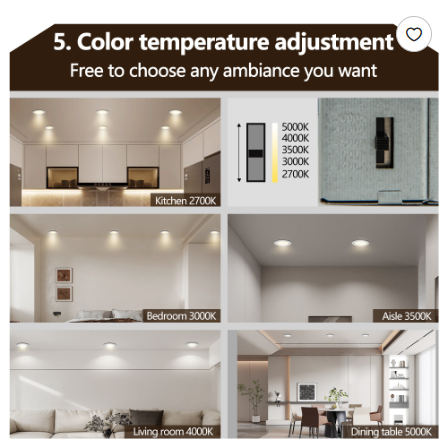 Multi color temperature adjustable: This lighting fixture supports adjustment of different color temperatures, and users can choose warm white, neutral color, or cool white light according to different needs, flexibly meeting different atmosphere requirements.