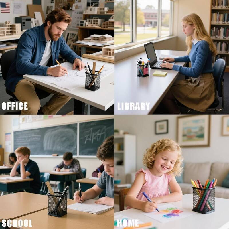 12 Pack Metal Pen Pots & Pencil Pots for Classroom - Square Mesh Pen Holder for Desk Office Organiser, Durable Black Epoxy-Coated Pen Holder with Industrial Design, Ideal Pencil Pot Set for Teachers, Students & Workspaces
