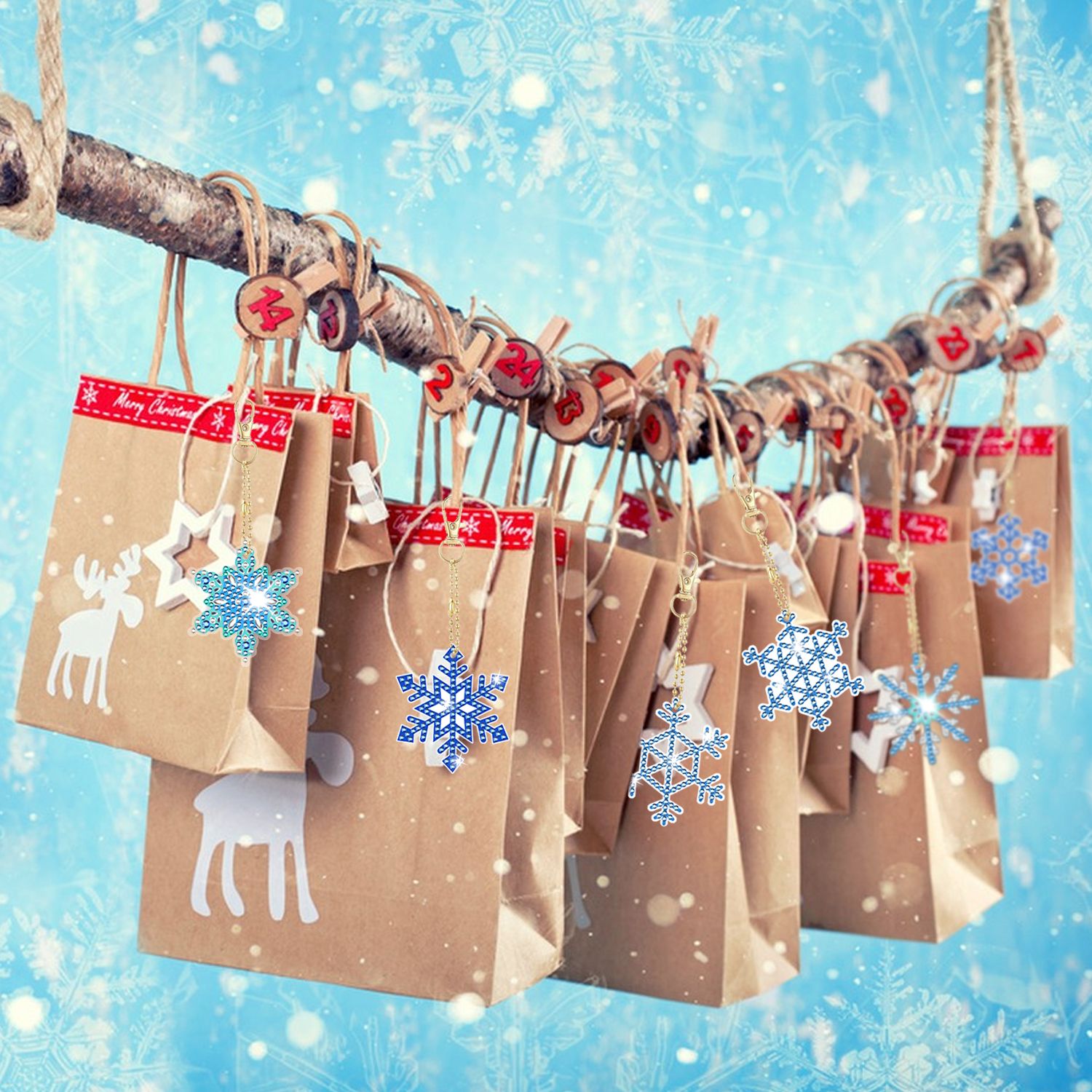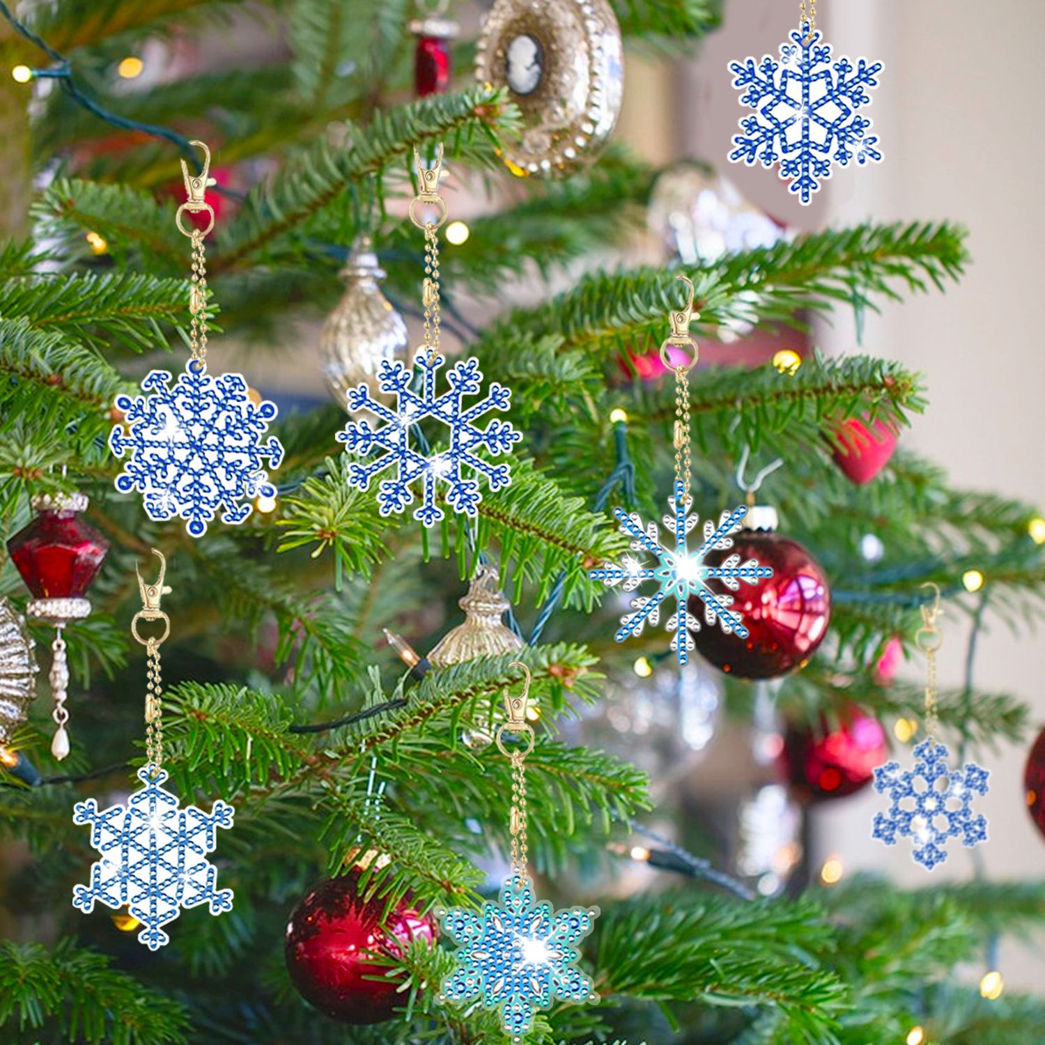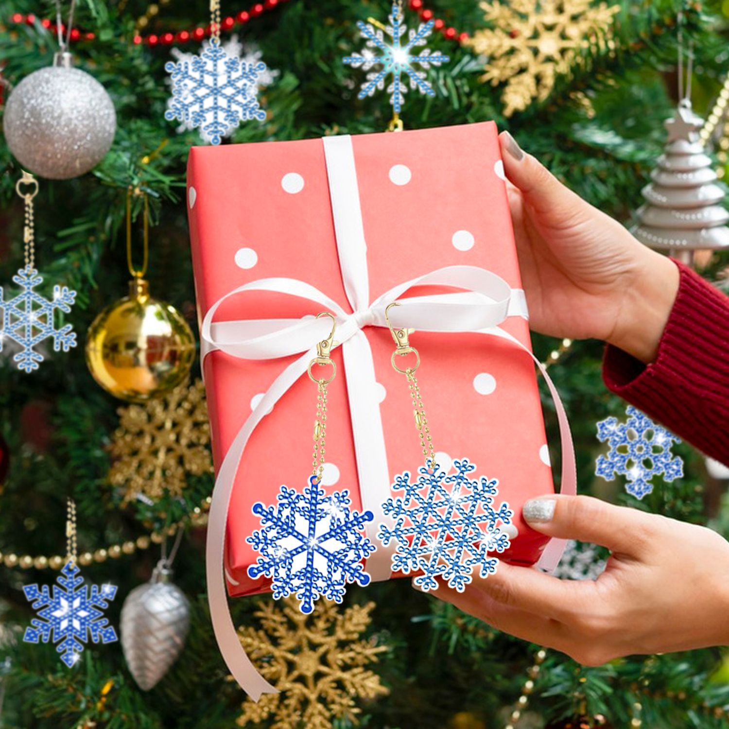 12 Packs Snowflake Rhinestones Painting Keychain Kits 12 Styles Snowflake Pendants DIY 5D Rhinestones Art Hanging Ornament For Xmas Tree Unique Double Sided Craft Party Favor Supplies
