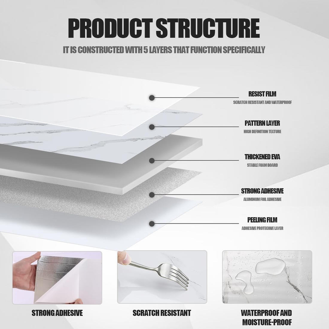 - Waterproof and moisture-proof, durable and easy to clean: Special surface treatment effectively resists moisture and oil stains, unaffected by kitchen fumes or bathroom moisture. Easy to clean, keeping walls clean for a long time.