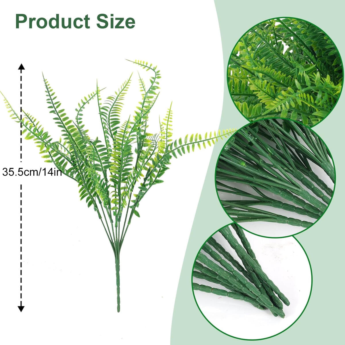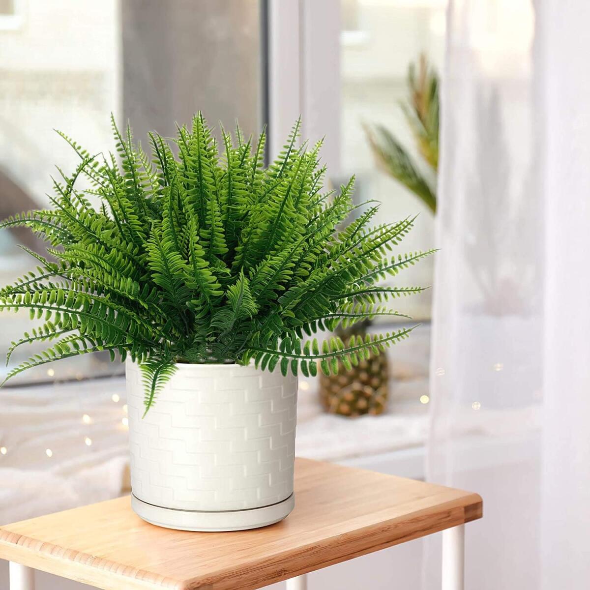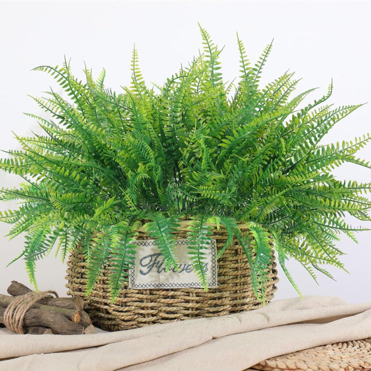 12 Pcs Artificial Boston Fake Fern Plants Bushes Faux Shrubs Outdoor Greenery Stems Plastic Bushes Bulk UV Resistant