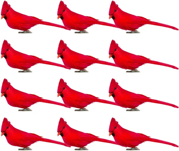 12 Pcs Artificial Red Cardinal Birds Clip, Christmas Cardinal Birds Clip, Fake Bird Red Cardinals Decor For Christmas Tree Ornament Decorations, Arts And Crafts