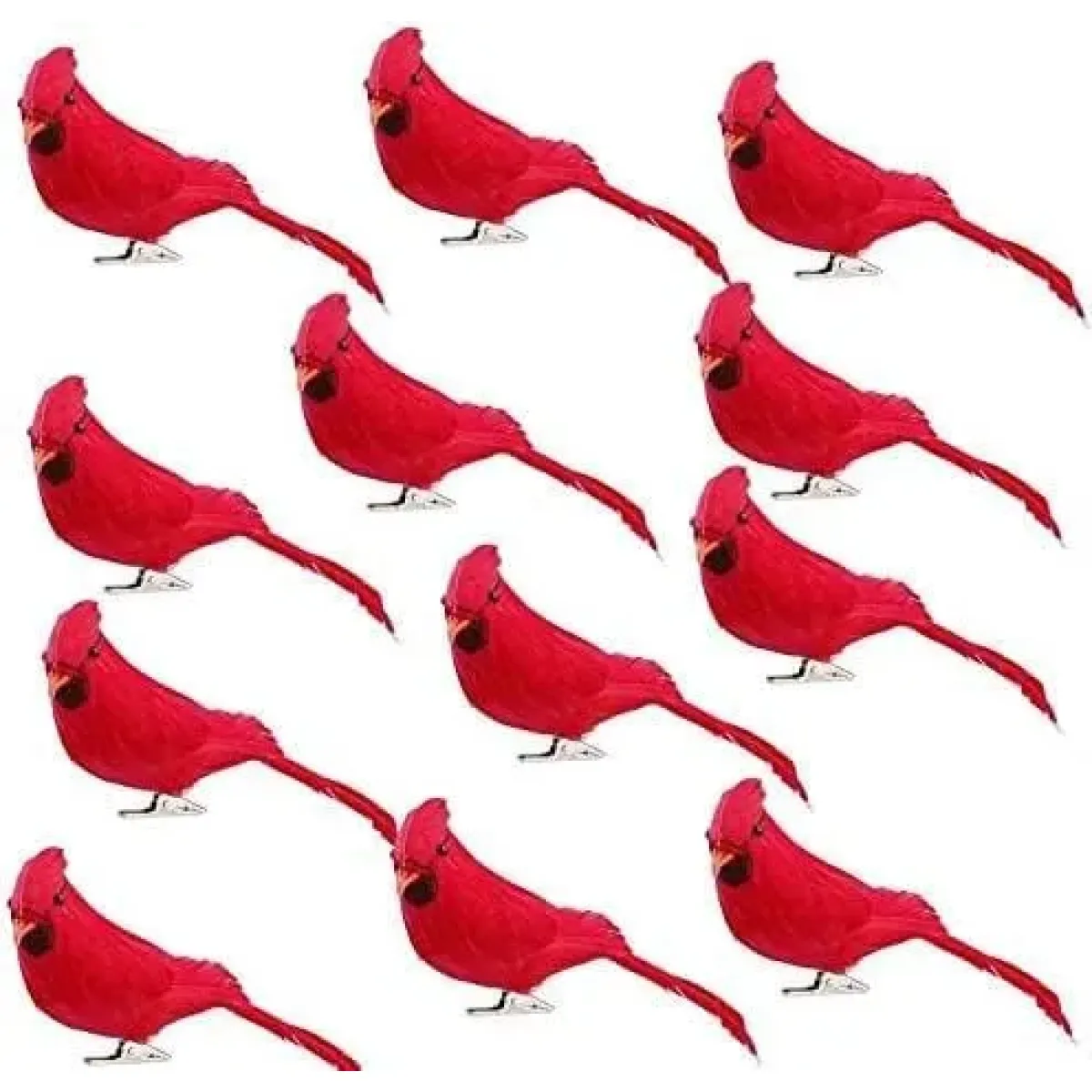 12 Pcs Red Birds Cardinal With Clip On Christmas Tree Decoration Artificial Red Birds With Feathers For Wreath Ornaments