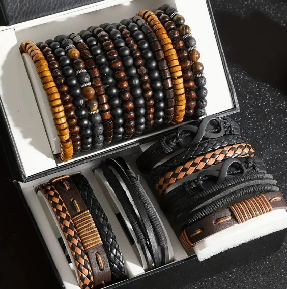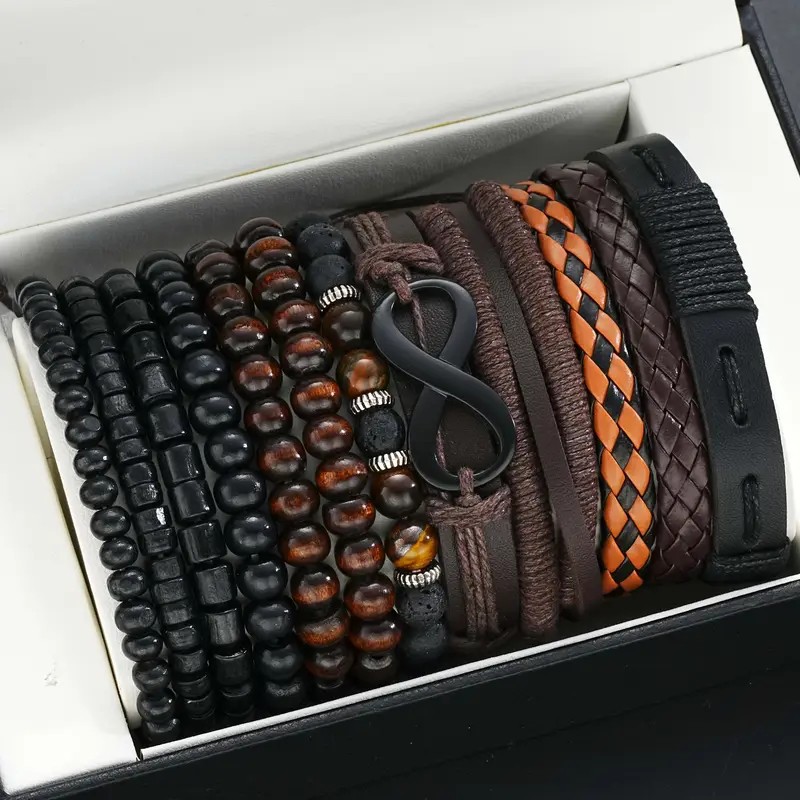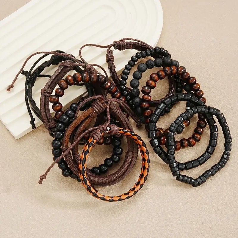 12-piece Set Of Coconut Shell Wooden Bead Stretch Bracelets For Men