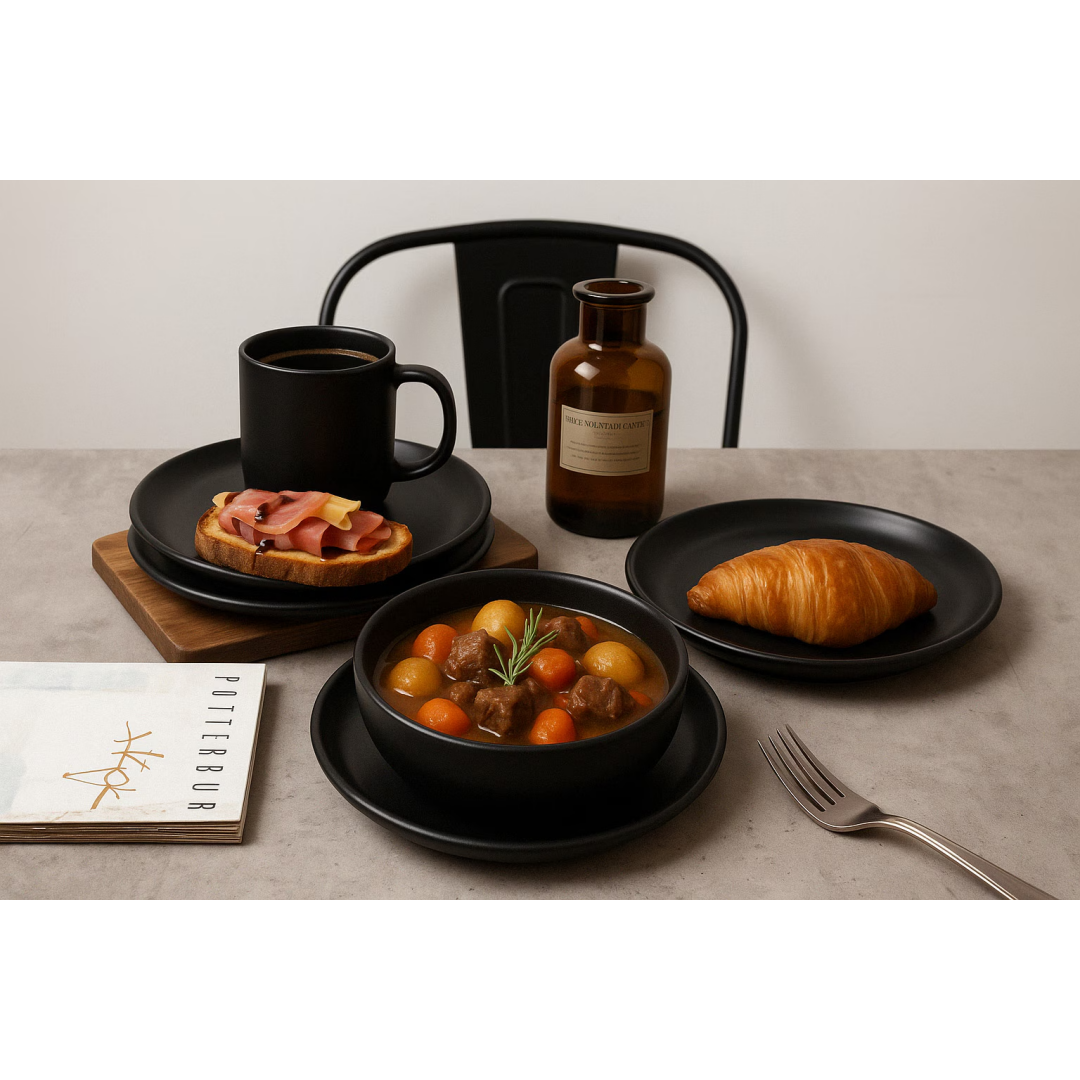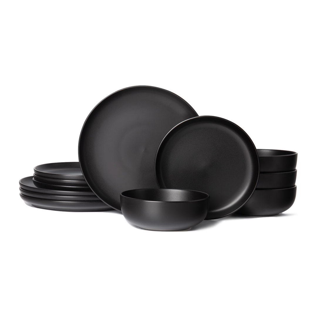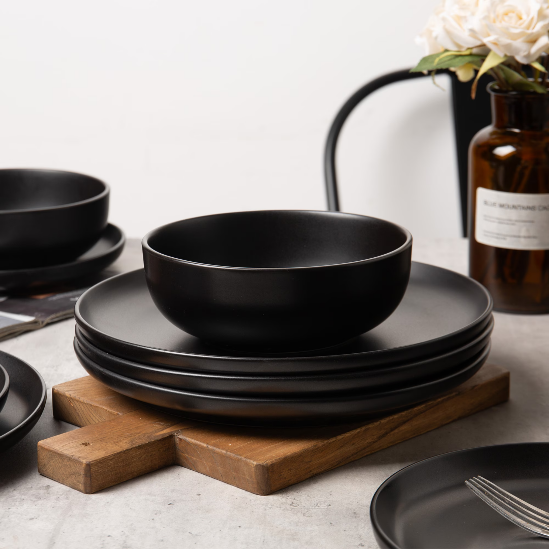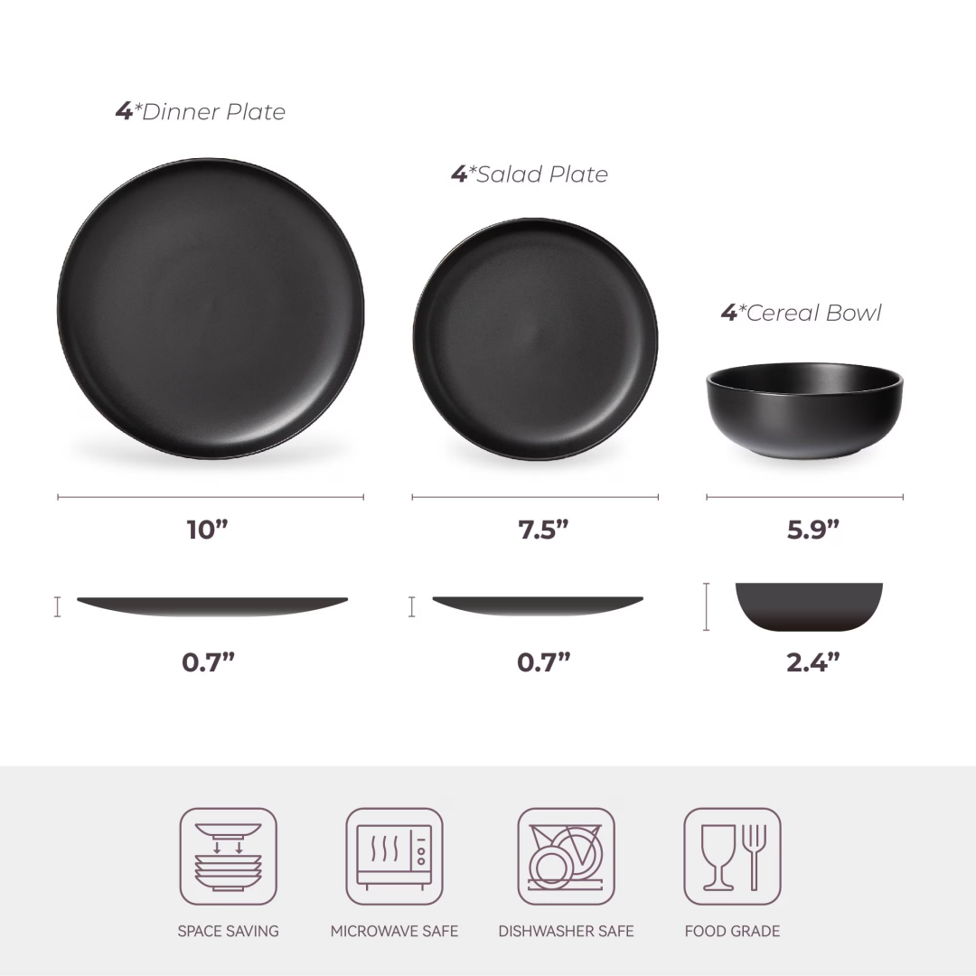 Product Name: 12-Piece Stoneware Dinner Plates Bowls Sets | Microwave & Dishwasher Safe | Non-Toxic Dinner Plates Bowls Set | Stackable Matte Glaze Kitchenware for 4