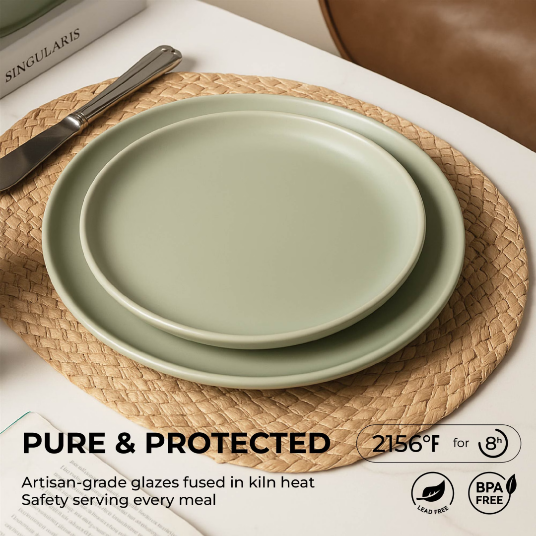 【Premium Stoneware Construction】: Crafted from high-density stoneware fired at 1180°C/2156°F for 8 hours, these chip-resistant dishes withstand daily use while maintaining elegant matte glaze finish.
