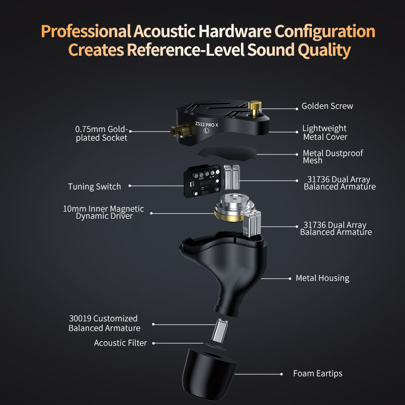 Headphone cable*1pc+Instruction manual*1pc+Replacement core*1pc+Replacement tool*1pc+Box*1pc+Headphone*1pair