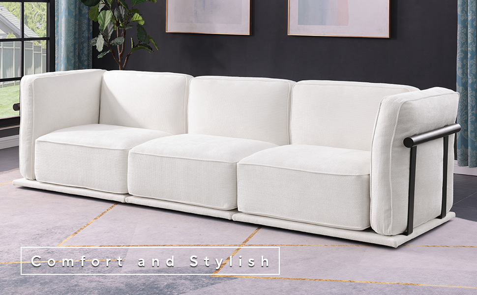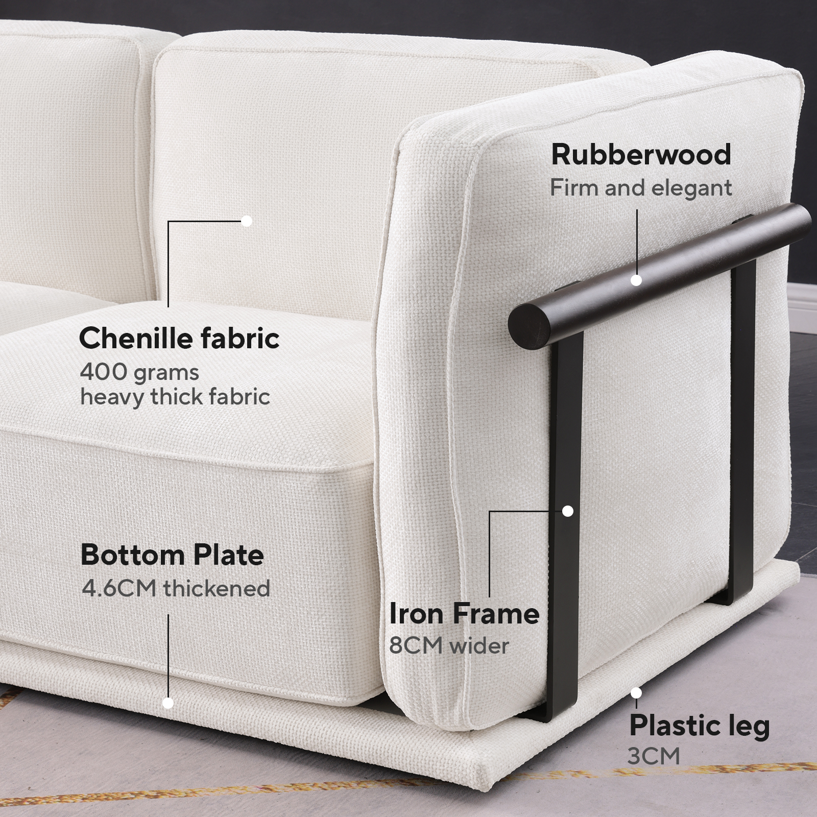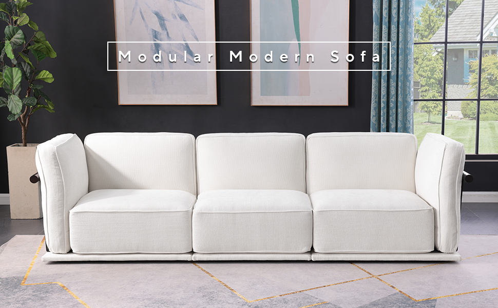 Product Name:120 Inch white Chenille Modular Sofa , Sturdy Iron,Wood Frame ,Fashionable and Versatile Upholstered Couch for Contemporary Living Rooms
