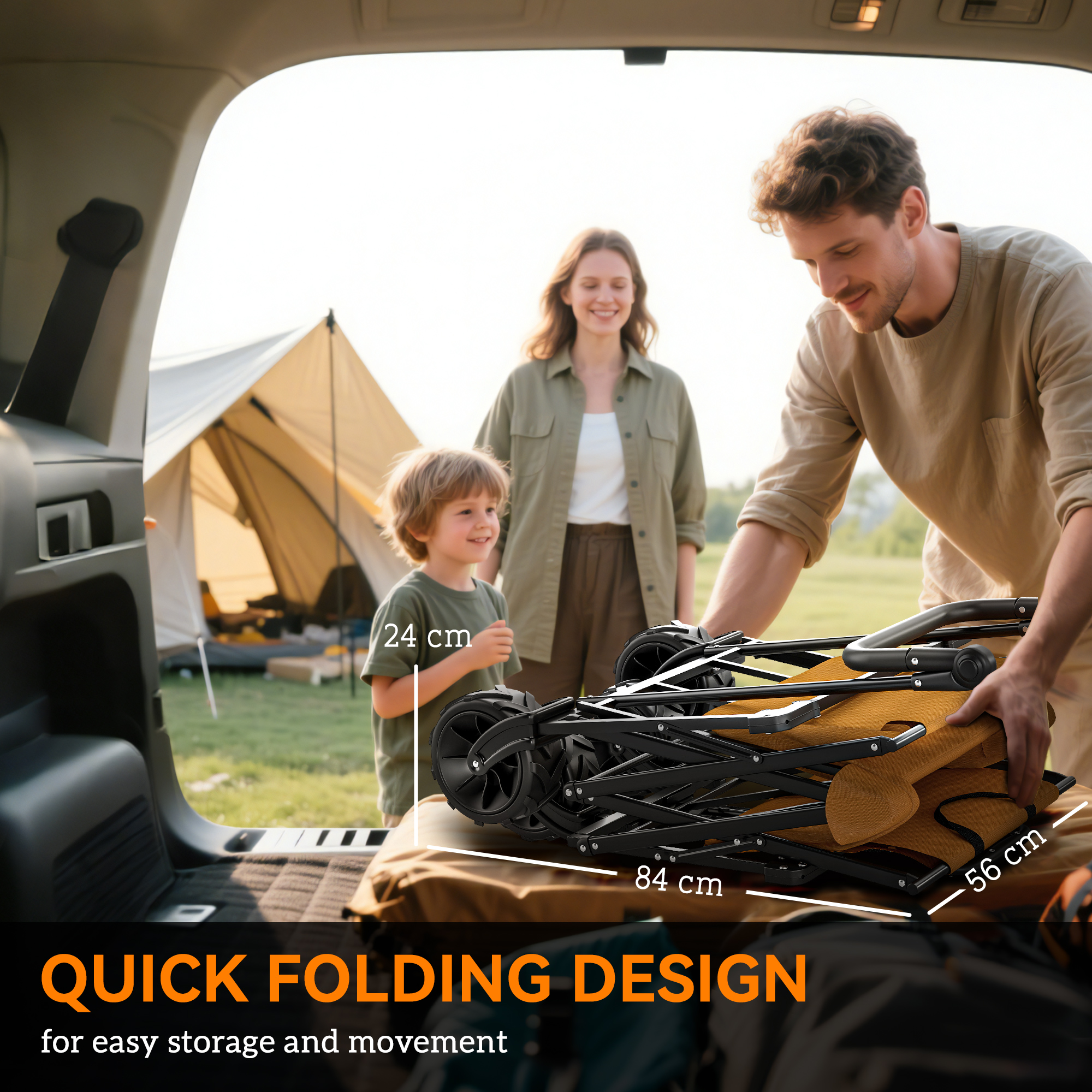 • Folding Size: 56L x 24W x 84Hcm