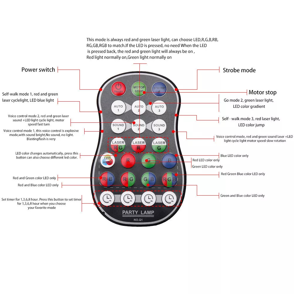 Remote Control Usage: (laser or LED lighting can be controlled separately)