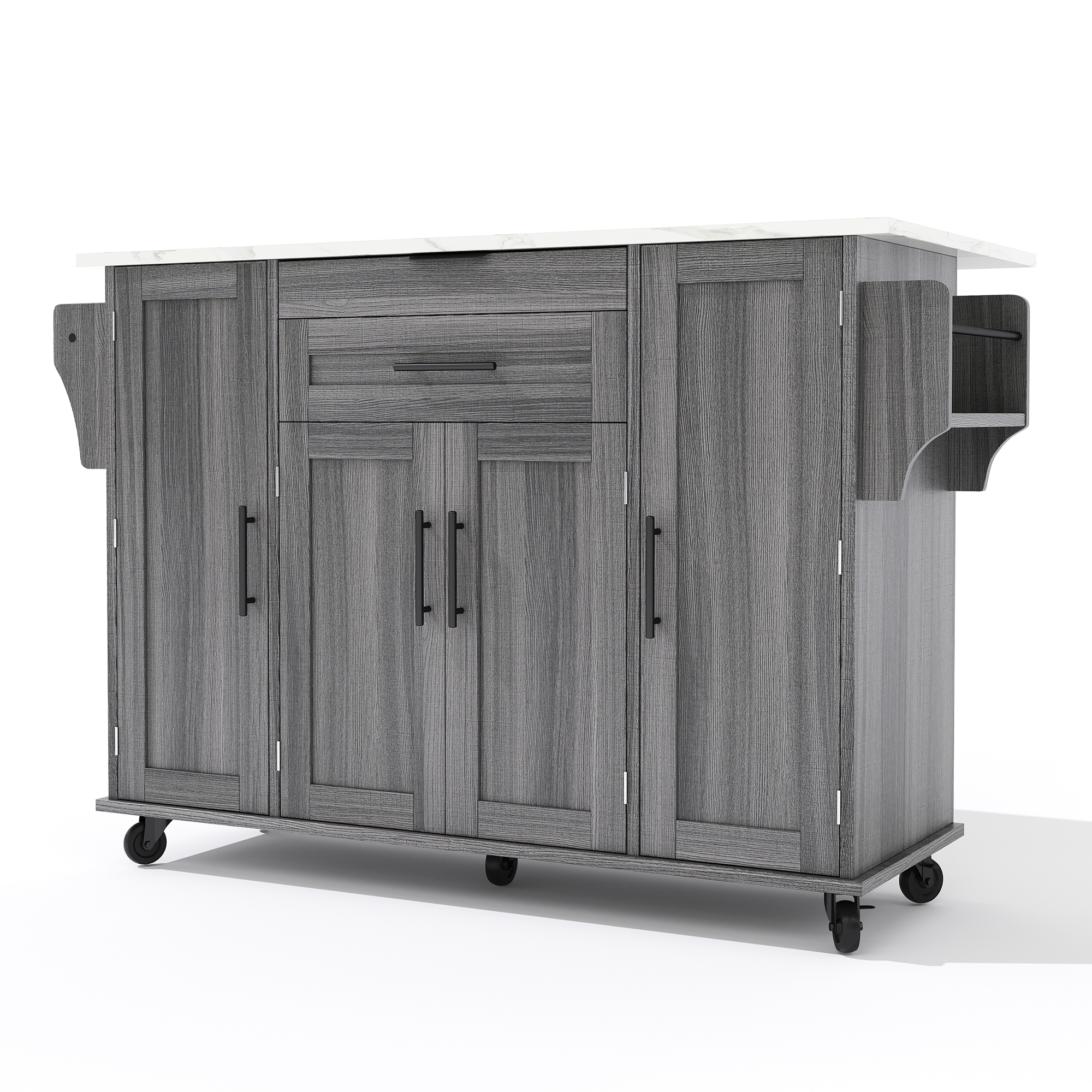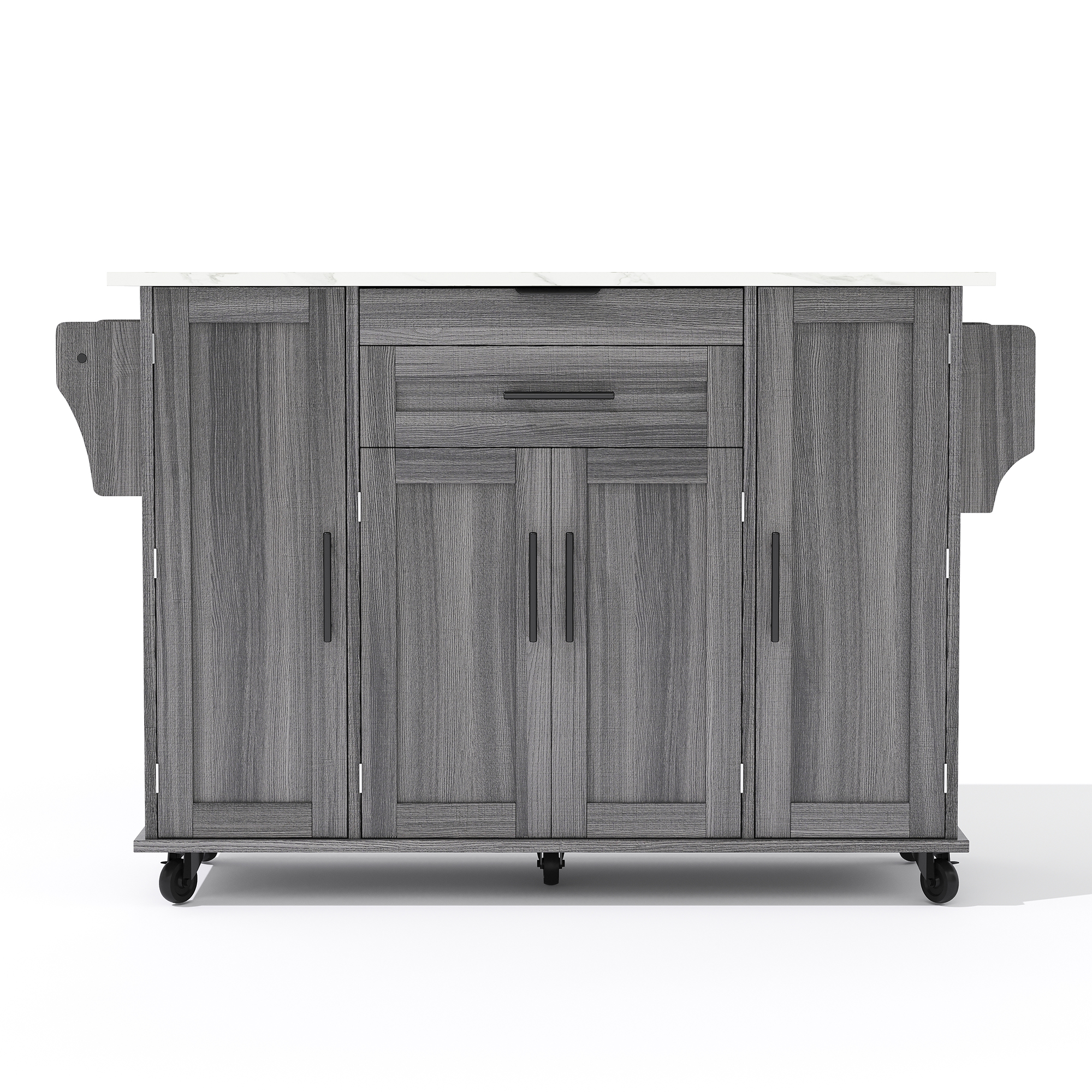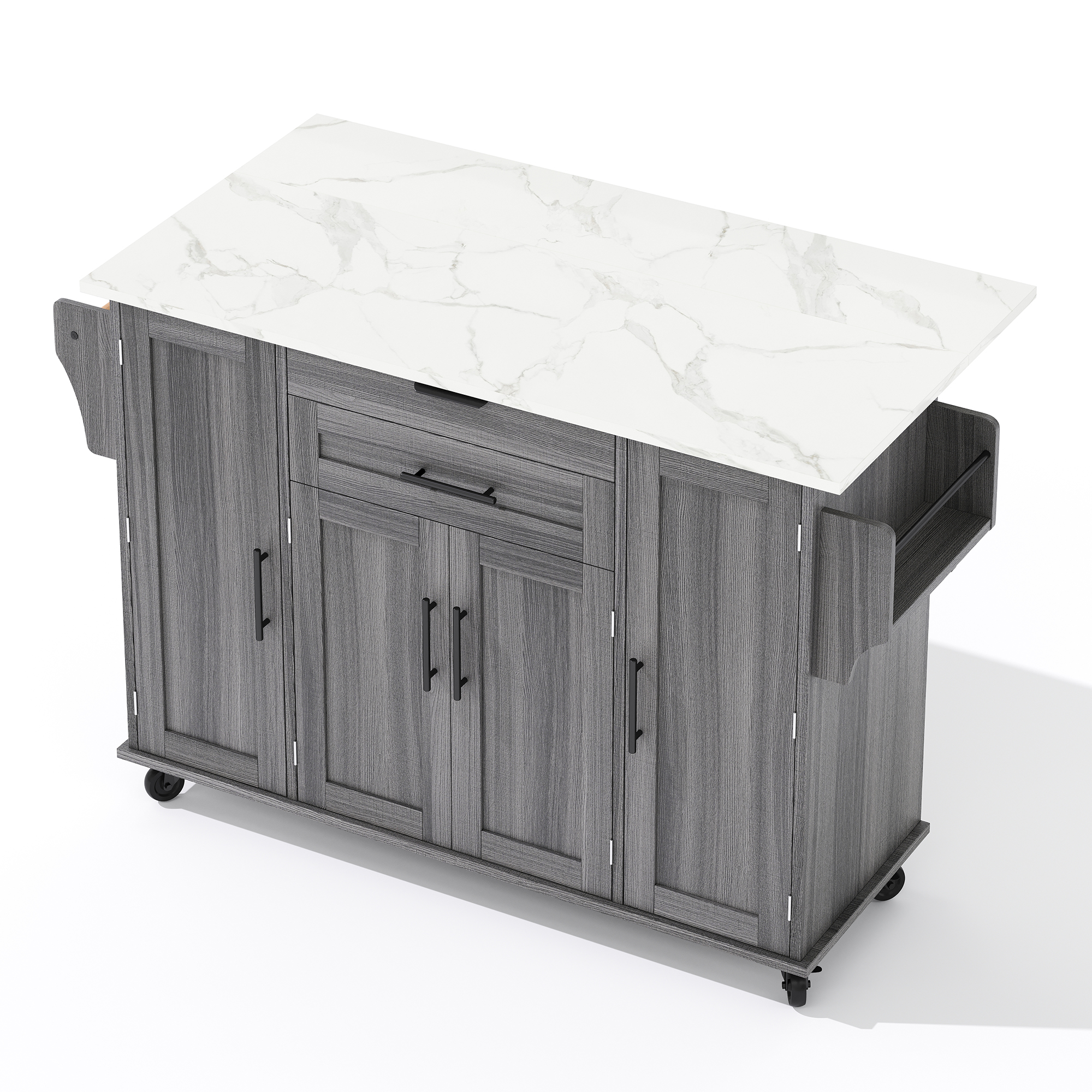 Product Name:129x46(71)x91cm Kitchen island on wheels, with foldable tabletop, adjustable shelves, rolling trolley with storage cabinets and 2 drawers, for the dining room