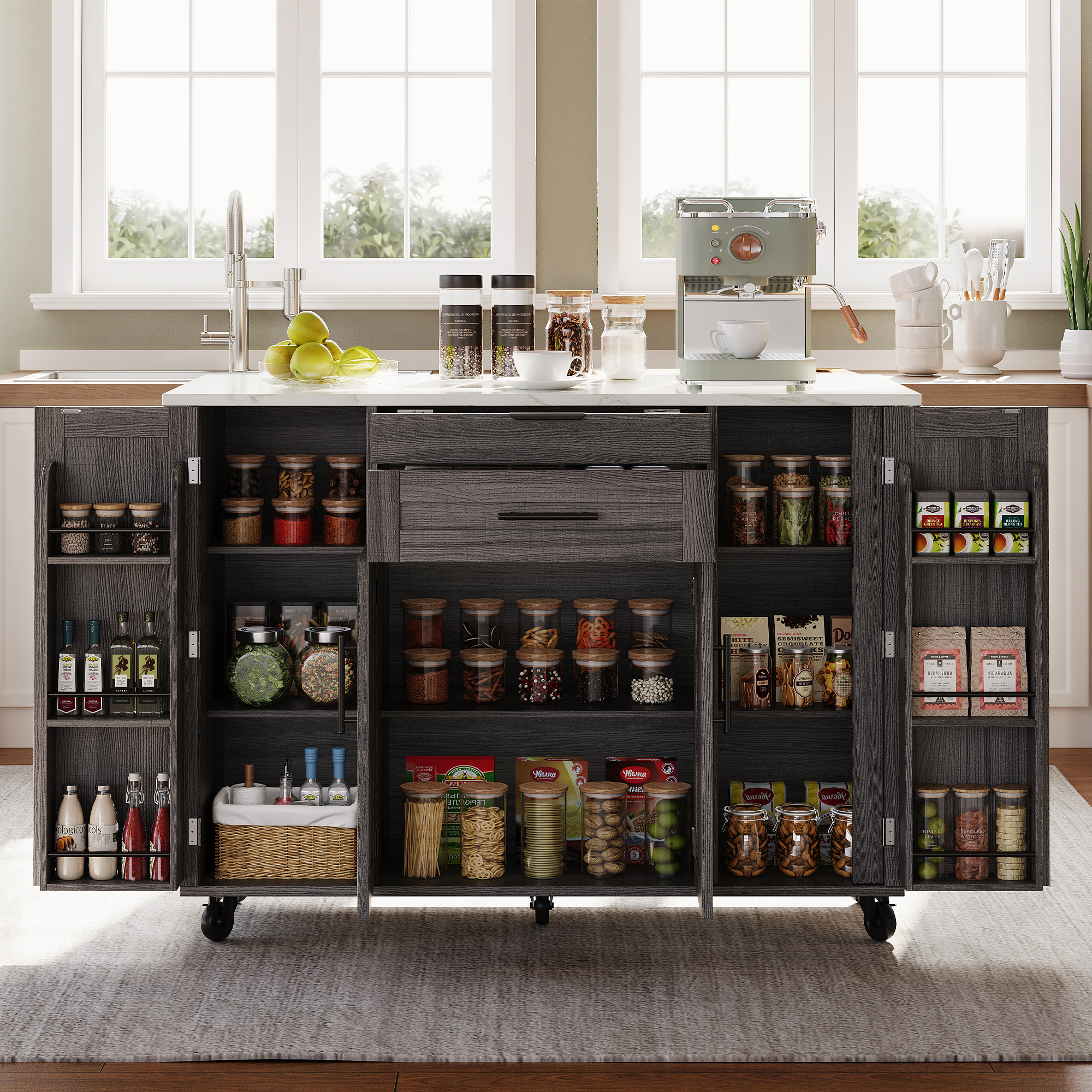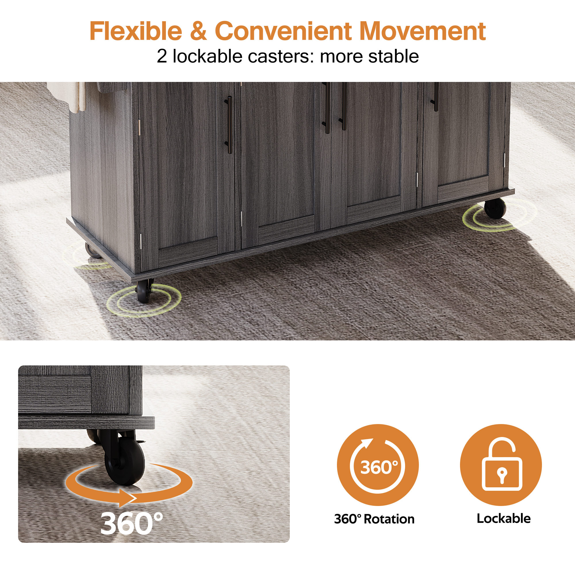 • 【Effortless and Secure Mobility】Equipped with five wheels (two lockable) for flexible movement and stable positioning, ideal for kitchens, dining areas, or living spaces.
