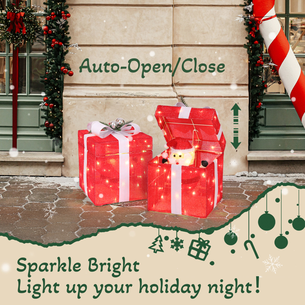1. Dynamic movement: This adorable gift box features a motorized design that automates pop-up and closing to add a lively motion to your decor, adding a touch of fun and festive cheer.