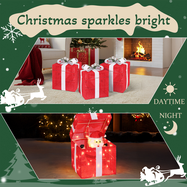 Create a warm and festive atmosphere with this enchanting set of Christmas lighted decorations. Perfect for both indoor and outdoor use, these glowing holiday displays will instantly brighten up your home, yard, or patio, making them a great addition to your seasonal décor. With durable construction and weather-resistant materials, these decorations are designed to withstand winter conditions, ensuring that they will bring holiday cheer year after year. Easy to set up and store, they provide a hassle-free way to enhance your holiday celebrations.