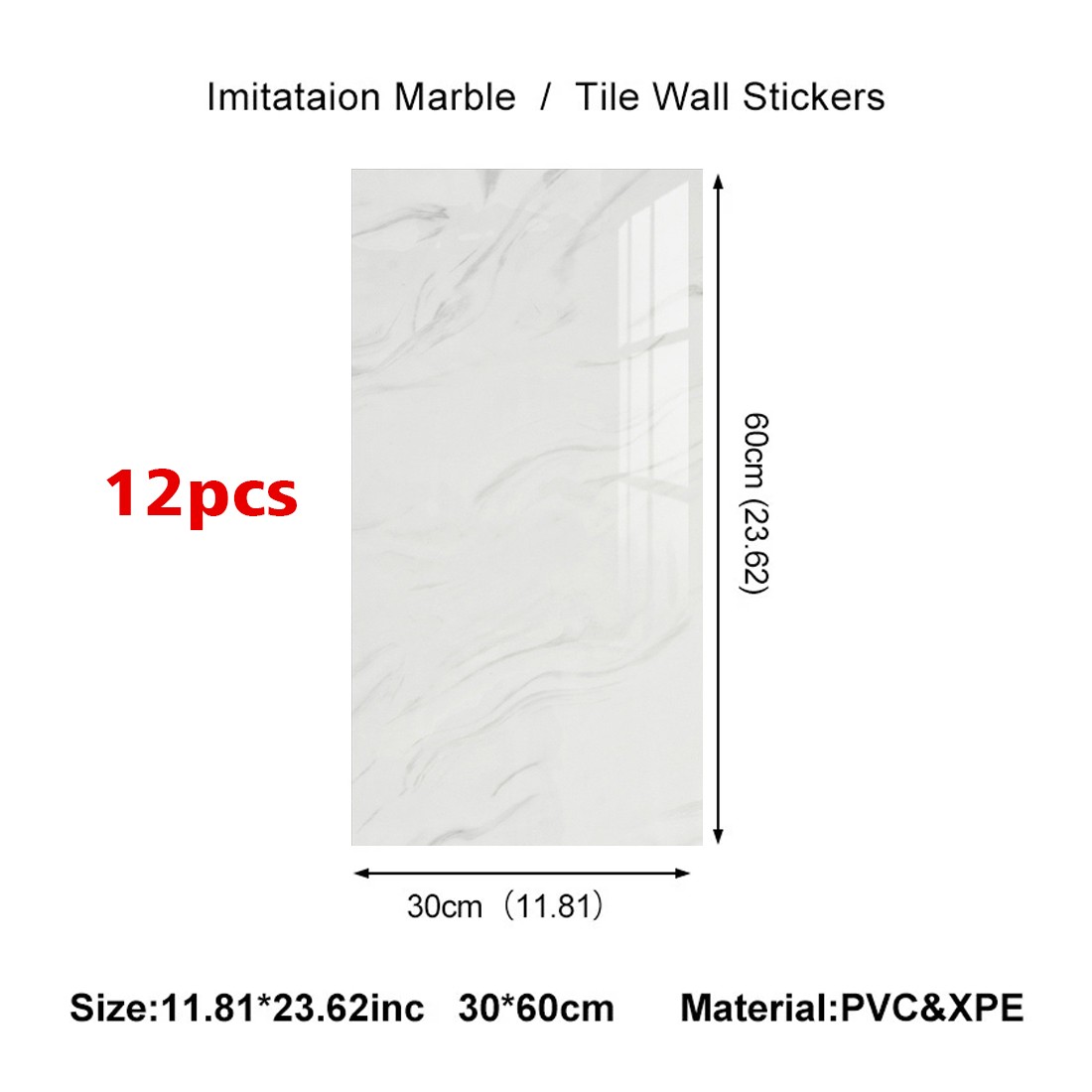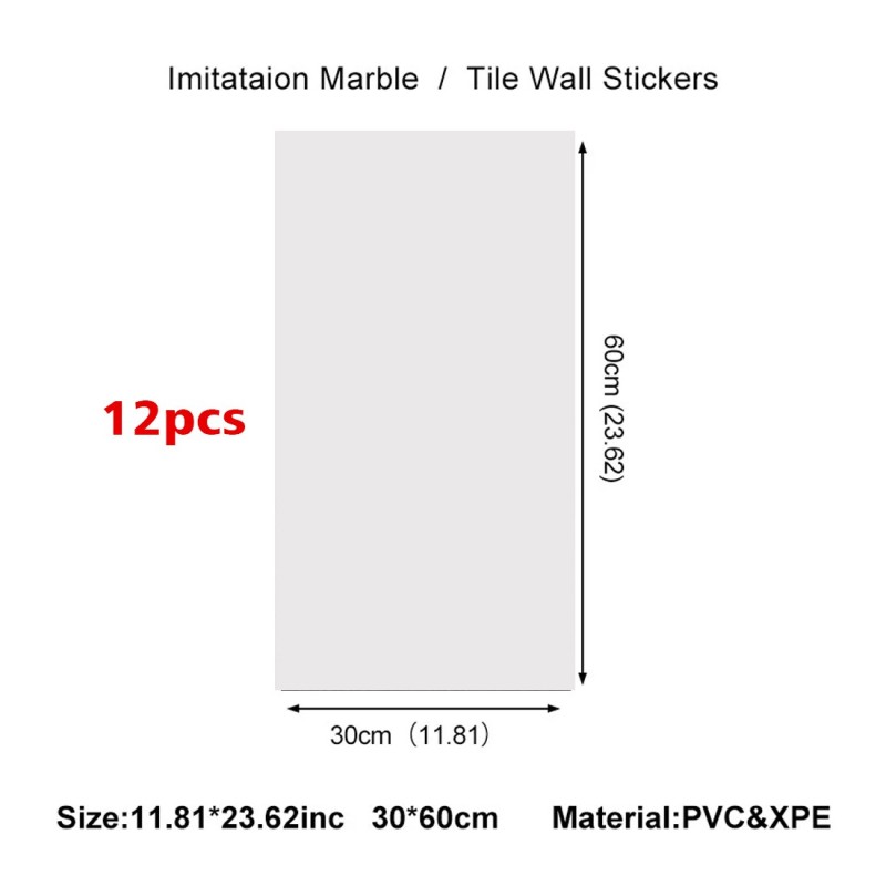 12PCS PVC Marble Tiles Wall Sticker Self-Adhesive Stick Kitchen Bathroom Decor