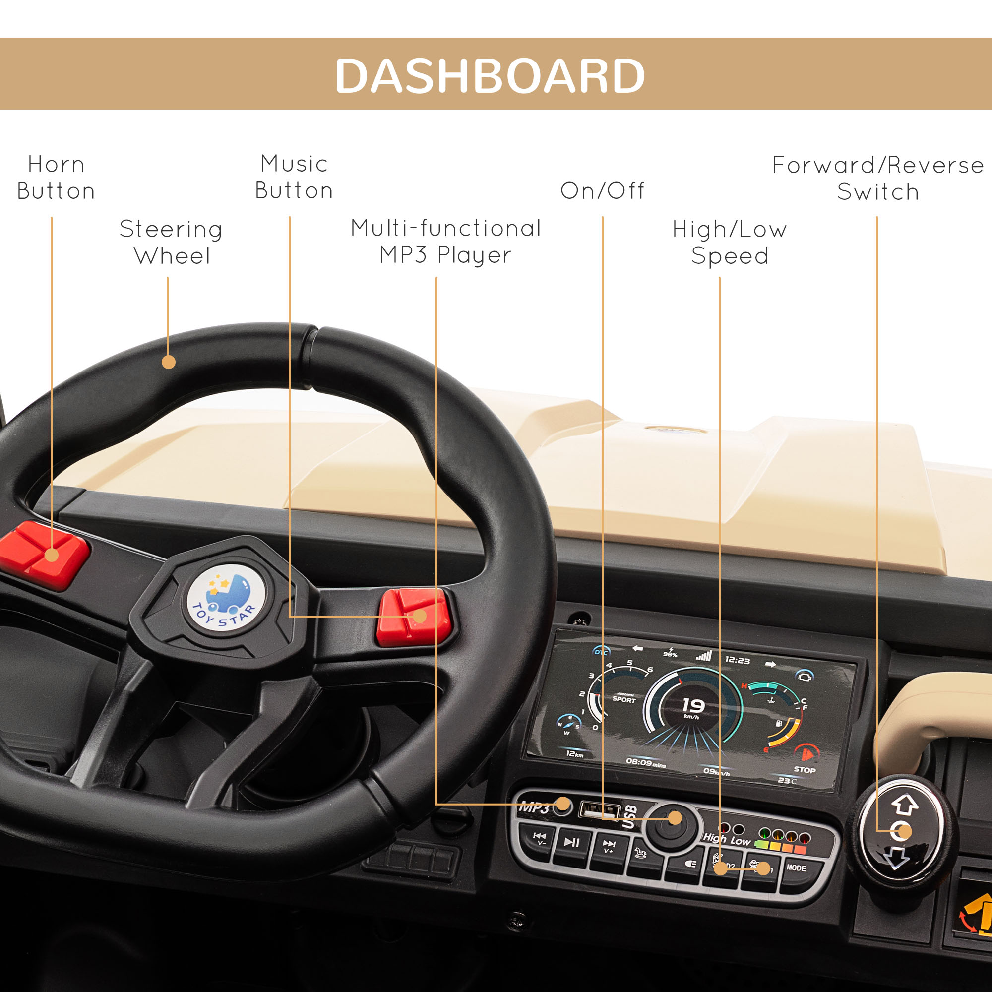 12V 2 Seater Kids Electric Ride-On Car With Electric Bucket, Remote Control - Yellow