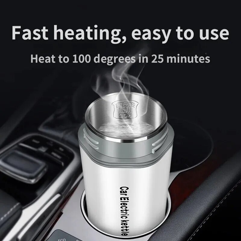 Integrated Leak-proof Design, better warm keeping. Sealant on lid with safety valve, double protection. 12V 96w high power, fast heating. Food grade material 304 stainless steel car electric heating cup.