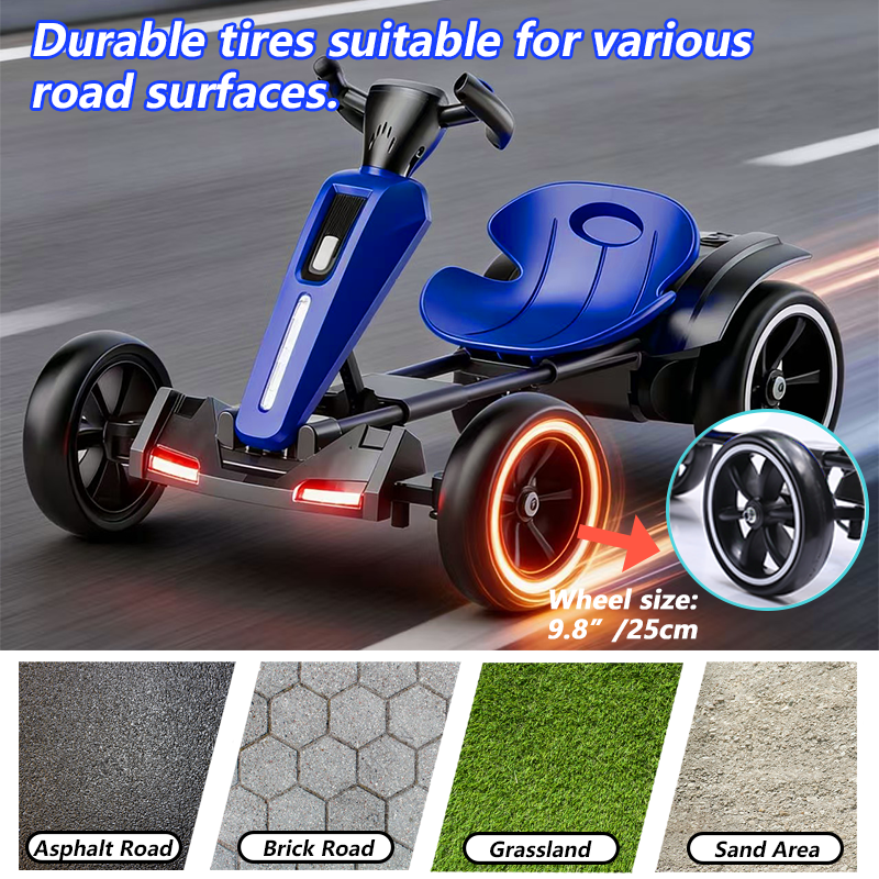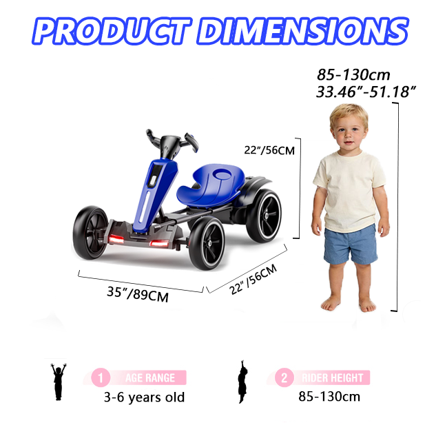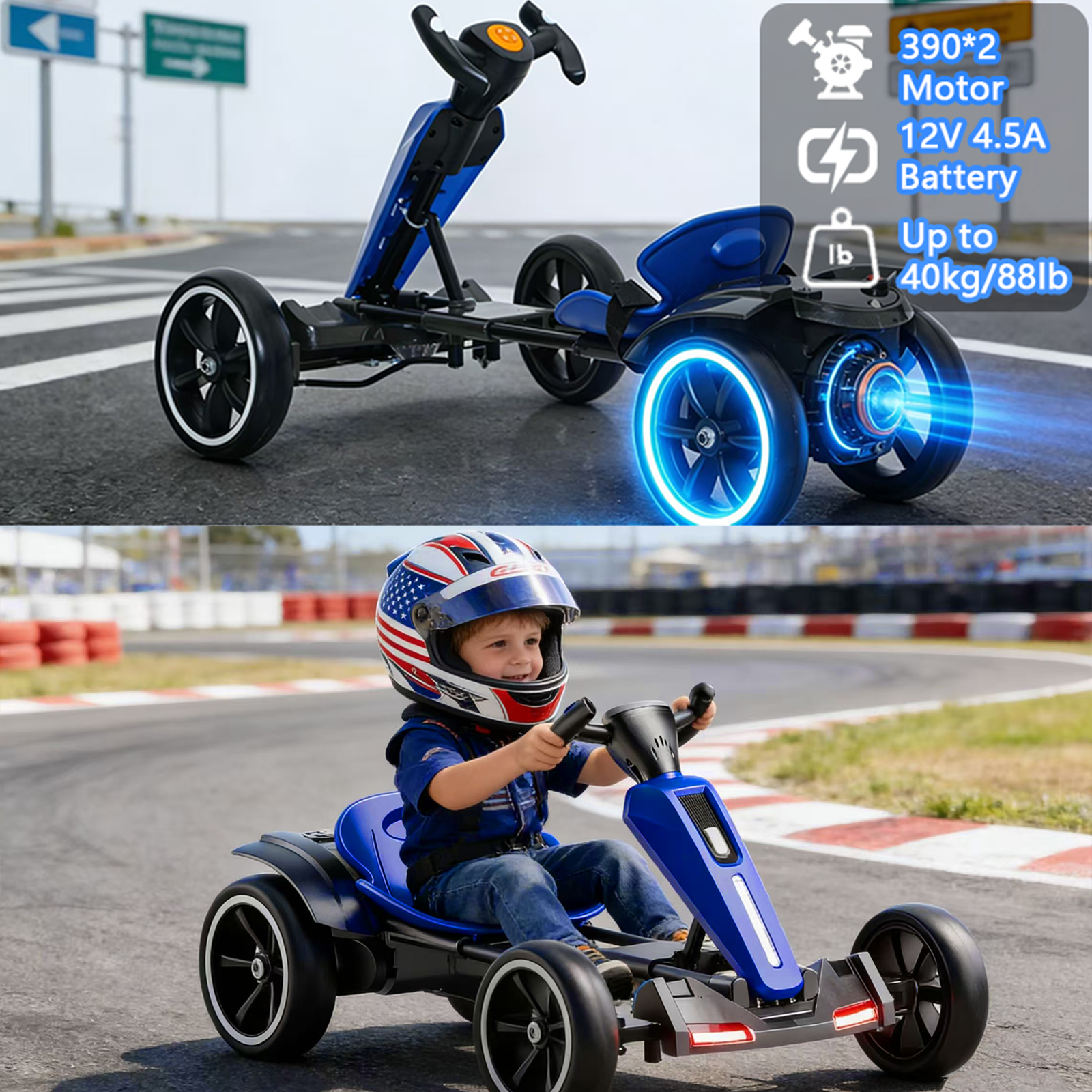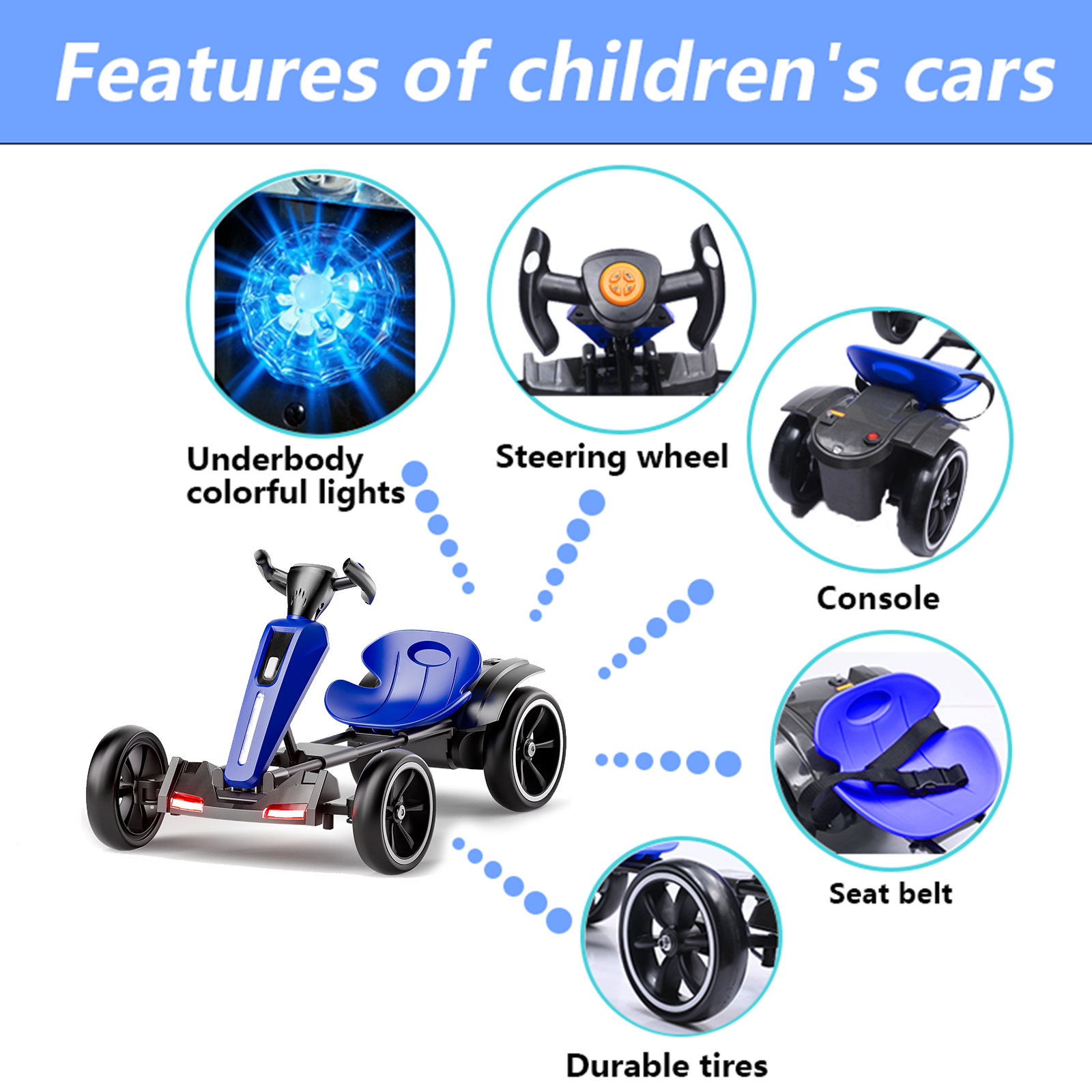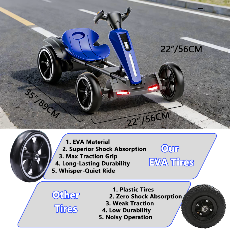 Product Name:12V electric Kids Pedal Go Kart, Folder Go Kart, Outdoor Ride on Toy with Adjustable Seat, 4 Non-Slip EVA Wheels for Boys and Girls For Age 3-6 Years Old (Blue)