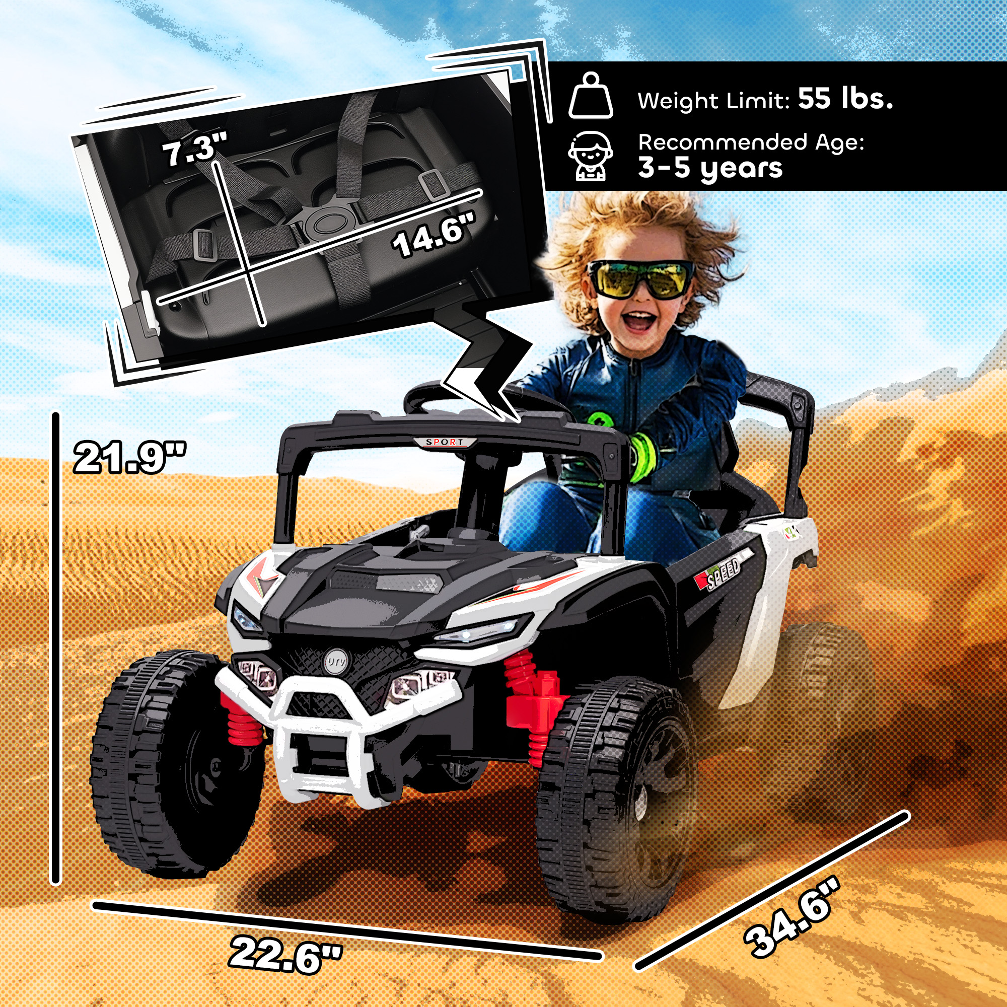- Safe & Smooth Ride: The rear suspension and large wheels absorb bumps for a smooth ride, with the 2-point safety belt offering security on various paths, so your child can enjoy the kids car with comfort