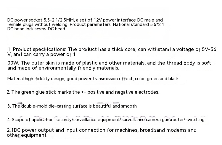 Scope Of Application: Securitymonitoring Machinemonitoring Camera GunrouterSwitchADSL Modem And Other Equipment 21DC Power Output Input Link